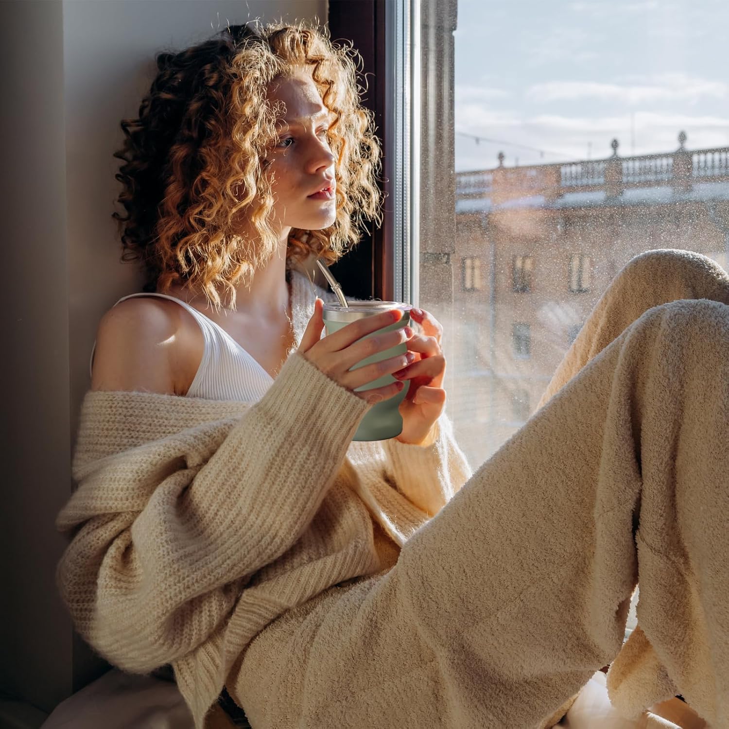 Beruth Bombilla Yerba Mate Gourd, 8oz Stainless Steel Tea Cup Set with a Multifunctional Lid, Two Straws and Cleaning Brushes, Double Walled Coffee Mug Heat Insulation Anti Scalding (Avocado Green)