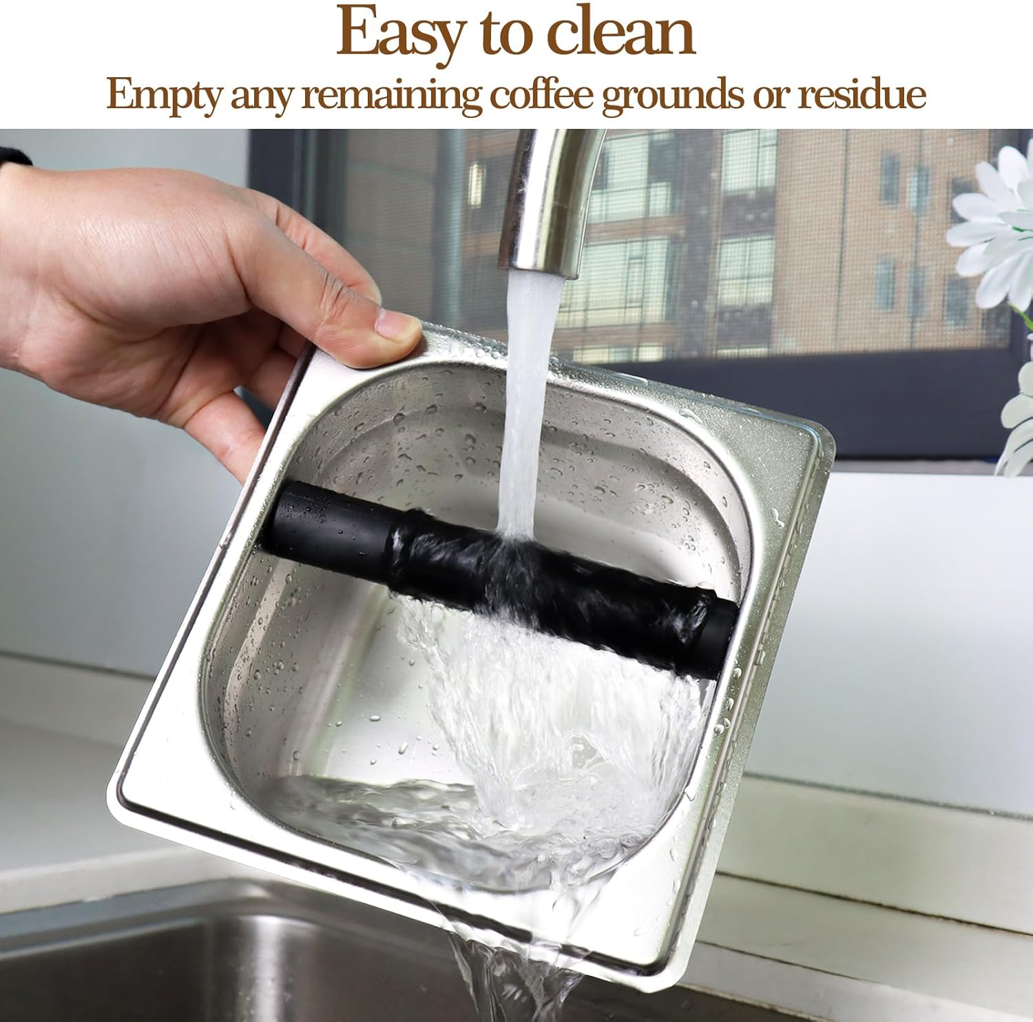 - Large Capacity and Splash-Proof: The coffee grounds knock box measures 7.2 x 6.8 x 4.3 inches, The asymmetrical design of the silicone bar and edge provides sufficient space for the handle, keeping grounds from spilling and maintaining a clean countertop