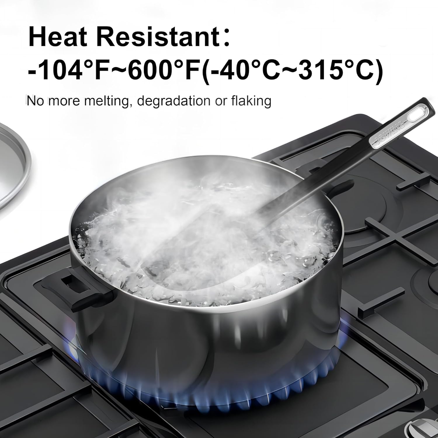 - 2. Durable and High Temperature Resistant : This silicone spatula set can withstand temperatures ranging from -104°F to 600°F (-40°C to 315°C), the average heat-resistant temperature of silicone spatulas ranges from 400 to 600 degrees Celsius. The core of silicone spatulas is reinforced, which makes it stronger, there's no more melting and cracking troubles.
