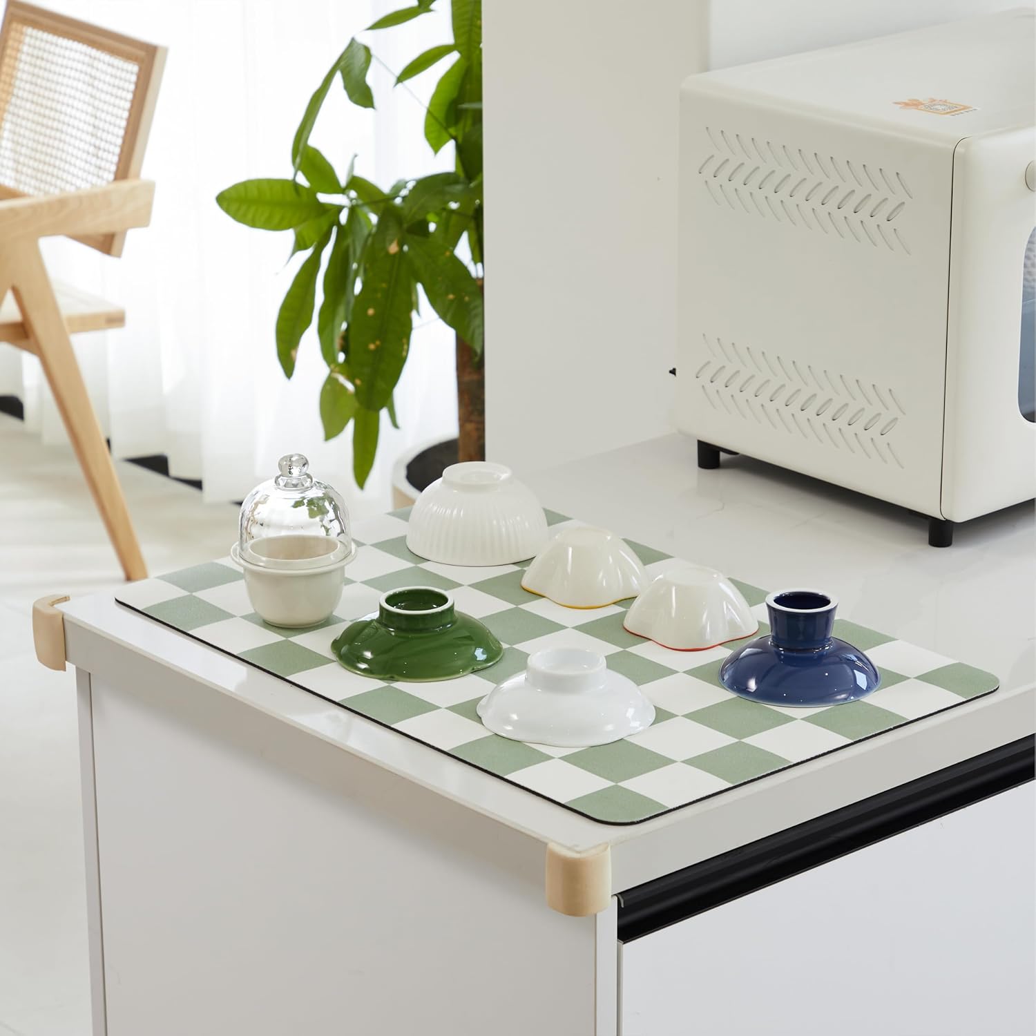 Checkered Dish Drying Mat for Kitchen Counter, Coffee Bar Station Accessories, Retro Cute Aesthetic Modern Absorbent Drainer Mat Kitchen Drying Mat Easy Clean, Sage 12" x 19"