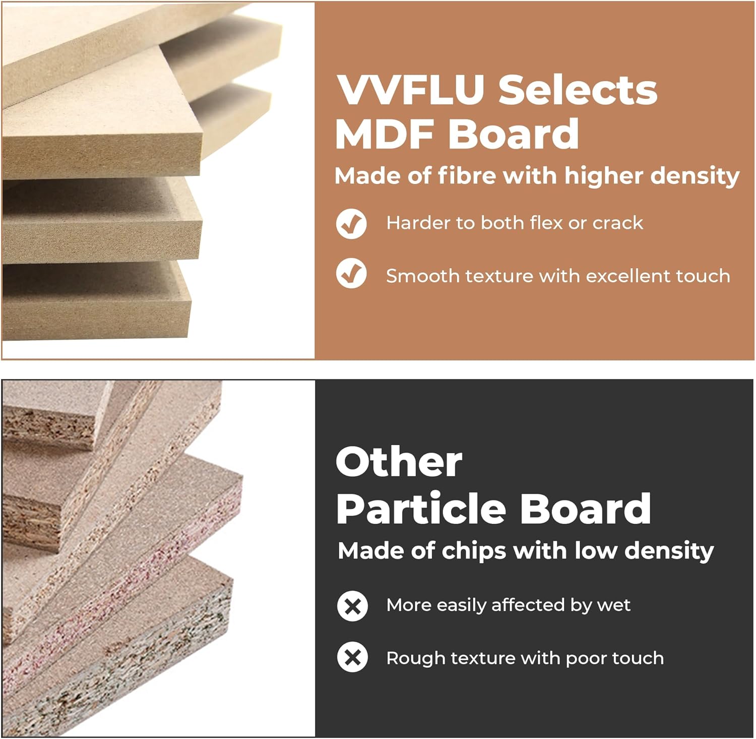- ăBetter WoodăThicker and Denser Wood. The coffee bar cabinet with 2 drawers and 4 barn doors is made from thicker MDF wood.The material with higher density is sturdier and smoother, largely reducing the likelihood of scratching, peeling and cracking.