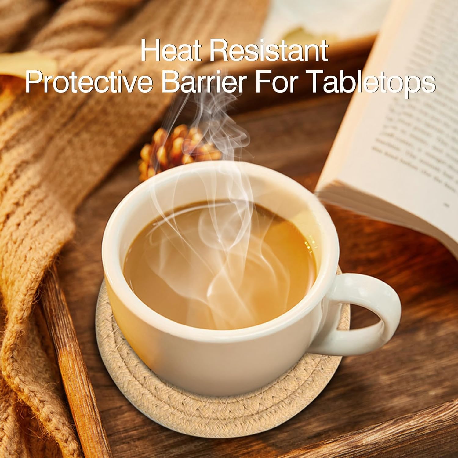 - 2. 【Absorbent & Heat-Resistant | Practical and Aesthetic】 Woven from thick pure cotton, these drink coasters effectively absorb accidental drips while providing excellent insulation for hot drinks. Protect your tabletop with style — no more water rings or heat damage