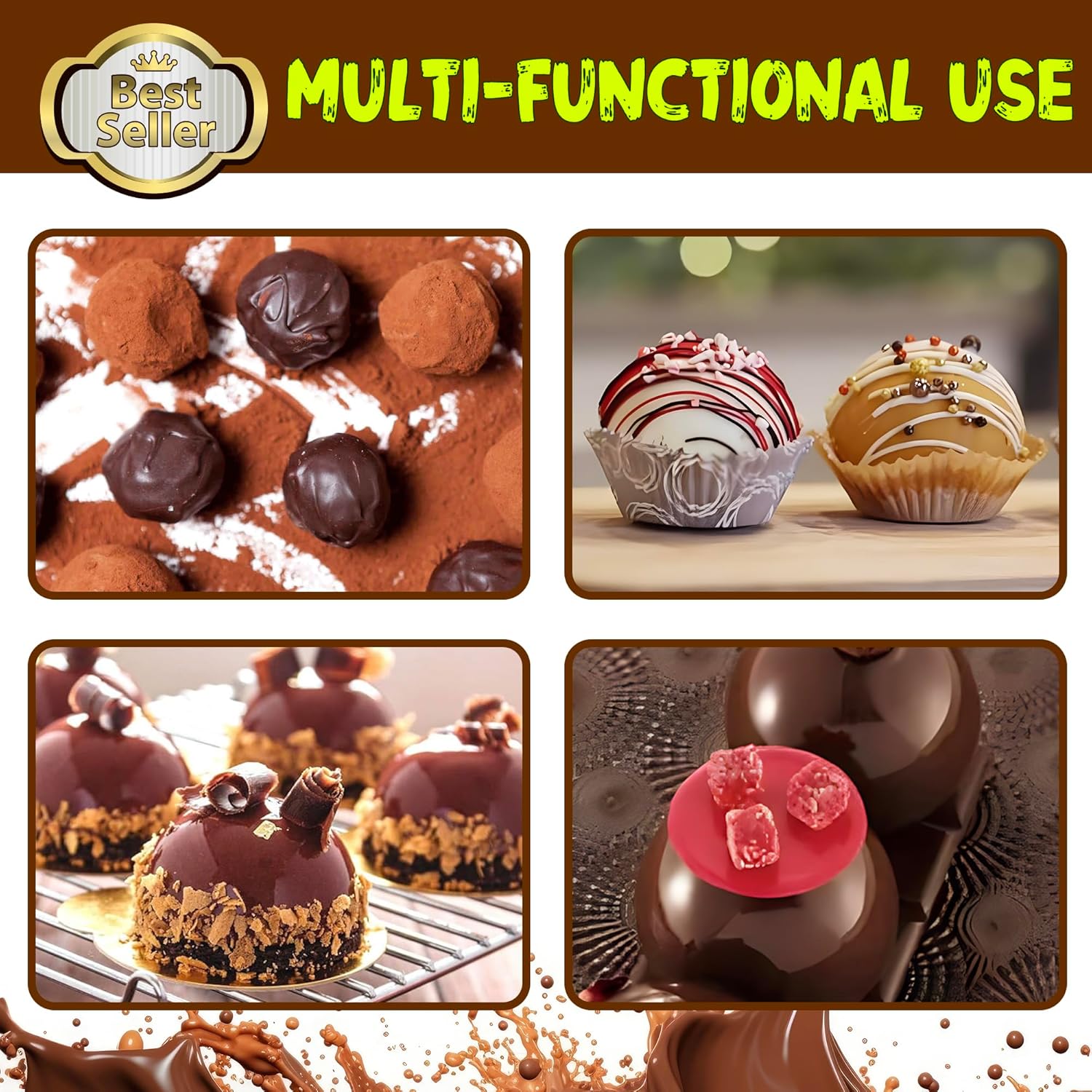 - The semi sphere silicone mold can be used for cakes such as dome mousse, chocolate bombe, ice cream cake, hot chocolate bomb, hand made soap etc.