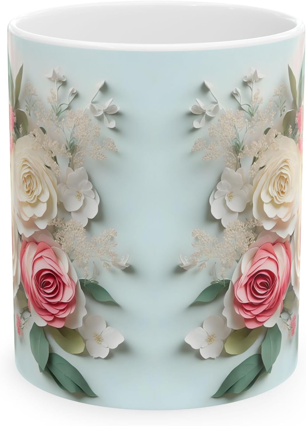 11 OZ Novelty Coffee Mugs - Christmas Gift (Rose Flower Theme)
