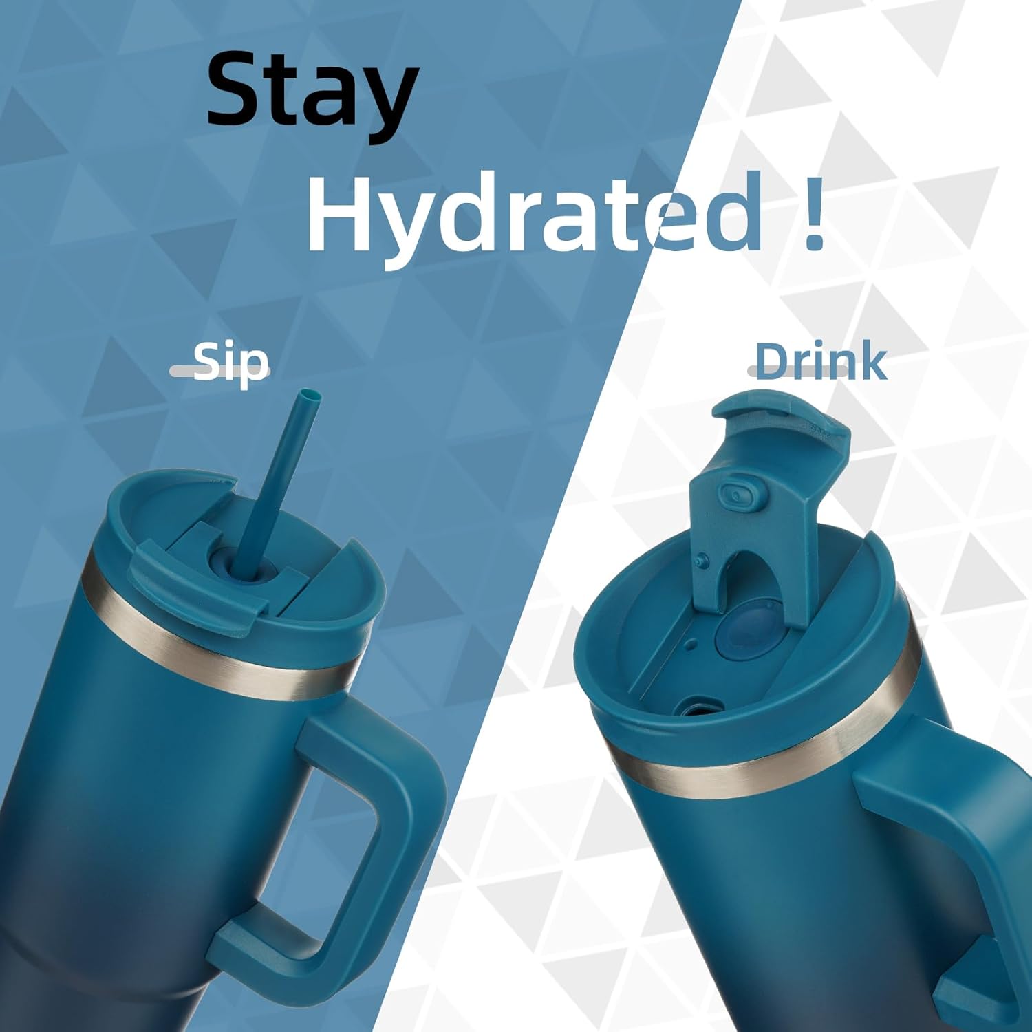 40 oz Tumbler with Handle and 2 Straws,2 in 1 Lid Insulated Water Bottle Stainless Steel Travel Coffee Mug,Indigo Black