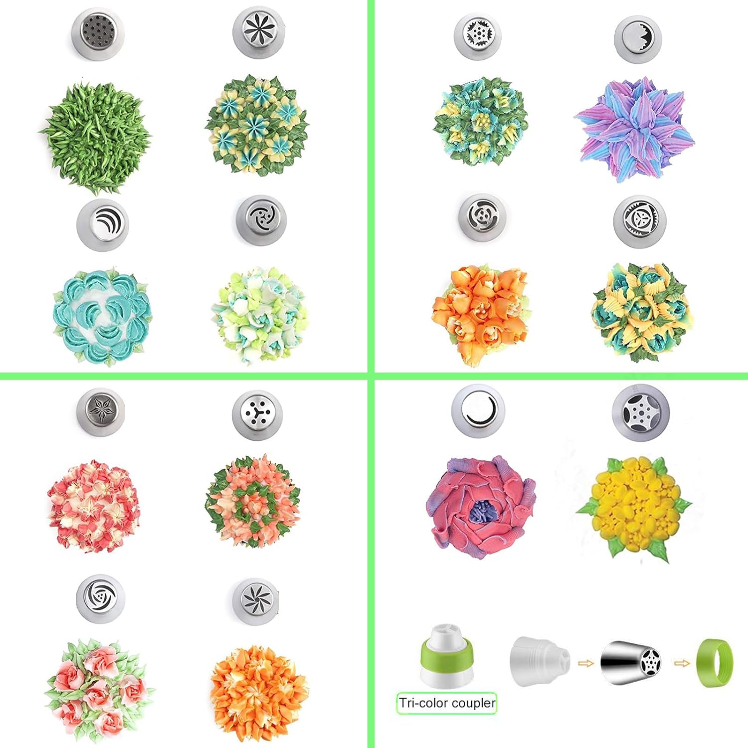 - Quality Frosting Piping Kit: We use professional 304 stainless steel to design the russian piping tips, molded in one operation; They are BPA free, seamless construction is stronger and dishwasher safe