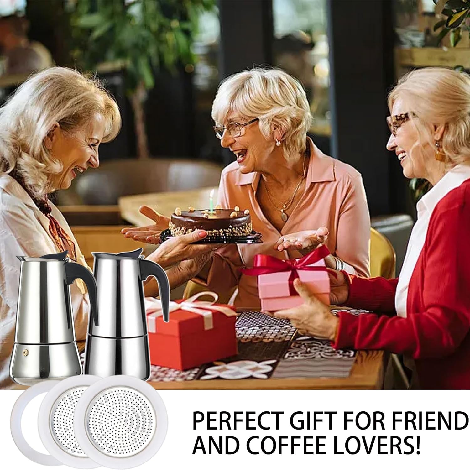 - Wide Compatibility: These replacement parts are designed to fit 4-cup stainless steel espresso moka pots of DITOSH brand. They are suitable for multiple temperature ranges and are highly practical. Never worry about a damaged gasket preventing you from enjoying your favorite cup of coffee – simply replace it. We recommend replacing the gasket every 3 to 4 months and the filter screen annually for optimal performance