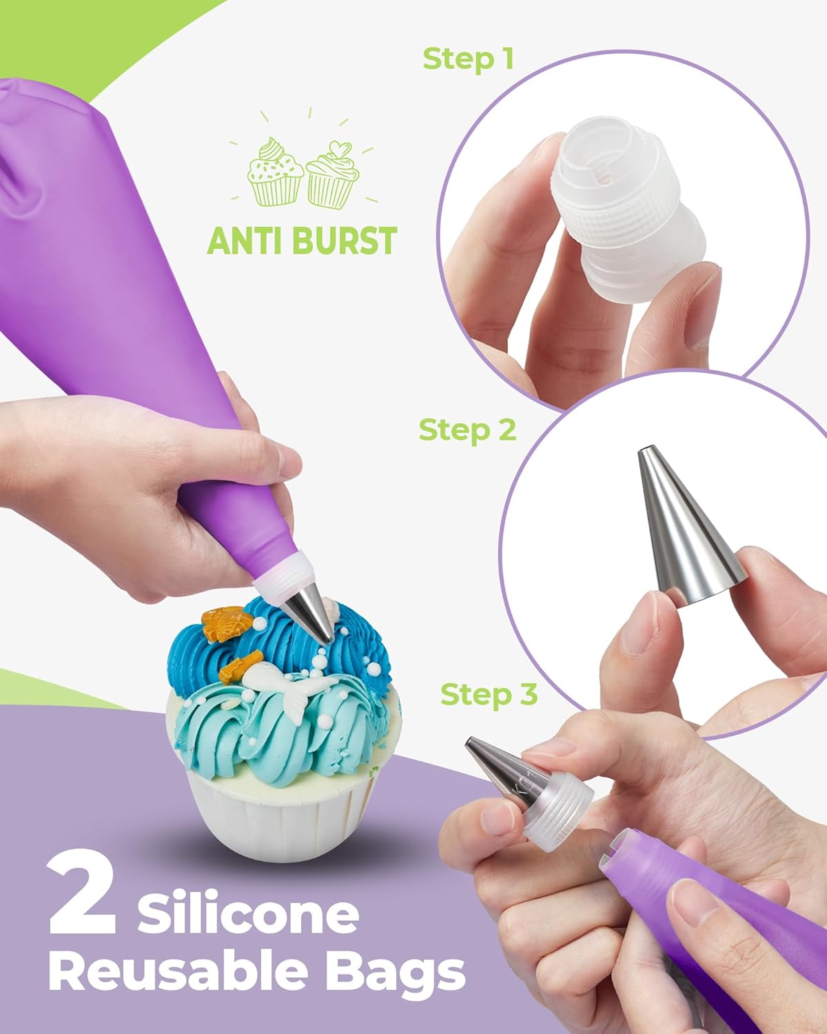 - Perfect Gift for Different Occasion: The cake decorating supplies kit is a versatile and thoughtful gift for birthdays, weddings, Mother's Day, Christmas, Easter, housewarming, or anniversaries. With this frosting piping kit, you can create professional-looking cupcakes, cakes, bread, biscuits, and other desserts for different occasion. Create beautiful and inviting desserts that will impress your guests at many event.