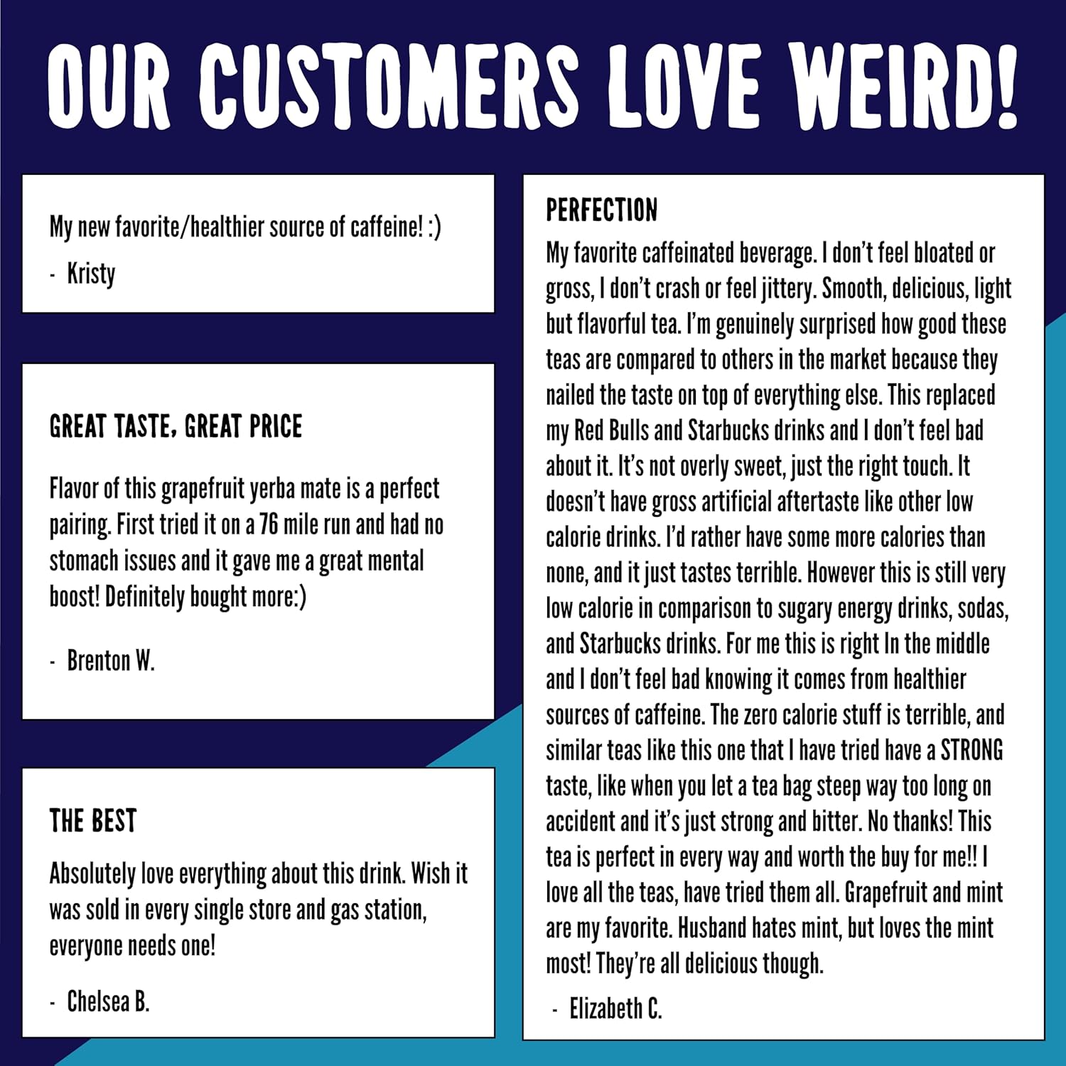 Drink Weird Organic Grateful Grapefruit Yerba Mate โ 16oz Cans, 160mg Organic Caffeine, Pack of 12 โ Grateful Dead Collab, Healthy Energy Drink Alternative