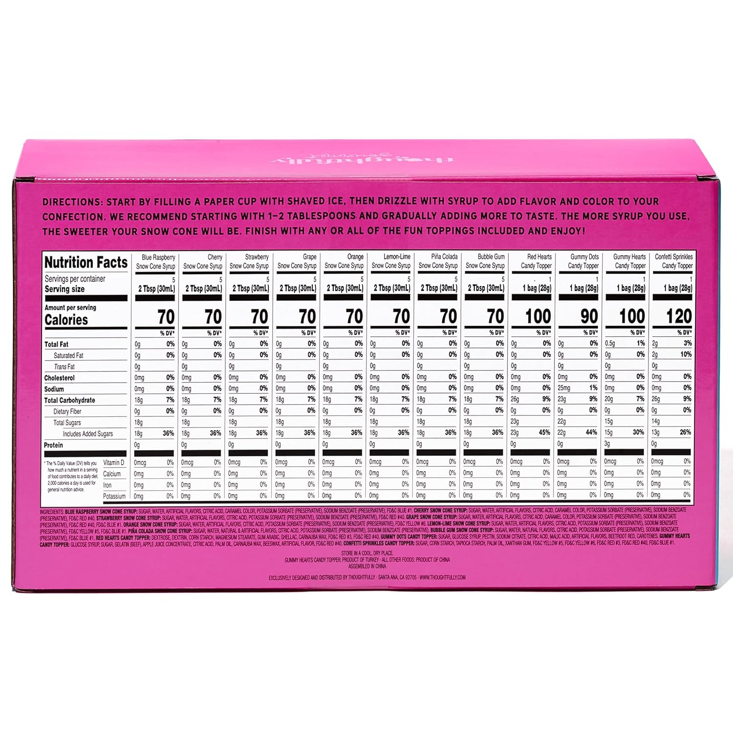 Thoughtfully Gourmet, Snow Cone Party Gift Set, Includes Ingredients for 20 Snow Cones, 8 Flavored Syrups, Toppings, and Paper Cups, Set of 20
