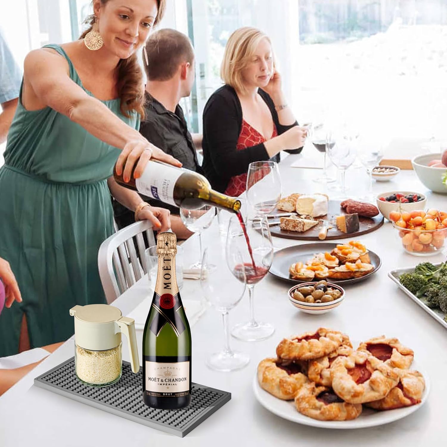 - NON-SLIP DESIGN: Featuring a unique non-slip texture and fine concave design, it effectively stops cups and glasses from sliding on the mat. Whether it's glasses, bottles or other drink containers, it stays firmly in place on the mat, providing you with stability and peace of mind.