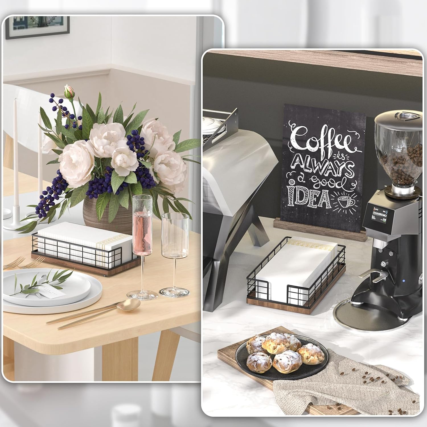 Wican Guest Towel Holder Tray for Bathroom, Oak and Iron Napkins Holder for Powder Room Dinning Table Wooden Basket for Disposable Paper Hand Towels Black & Walnut