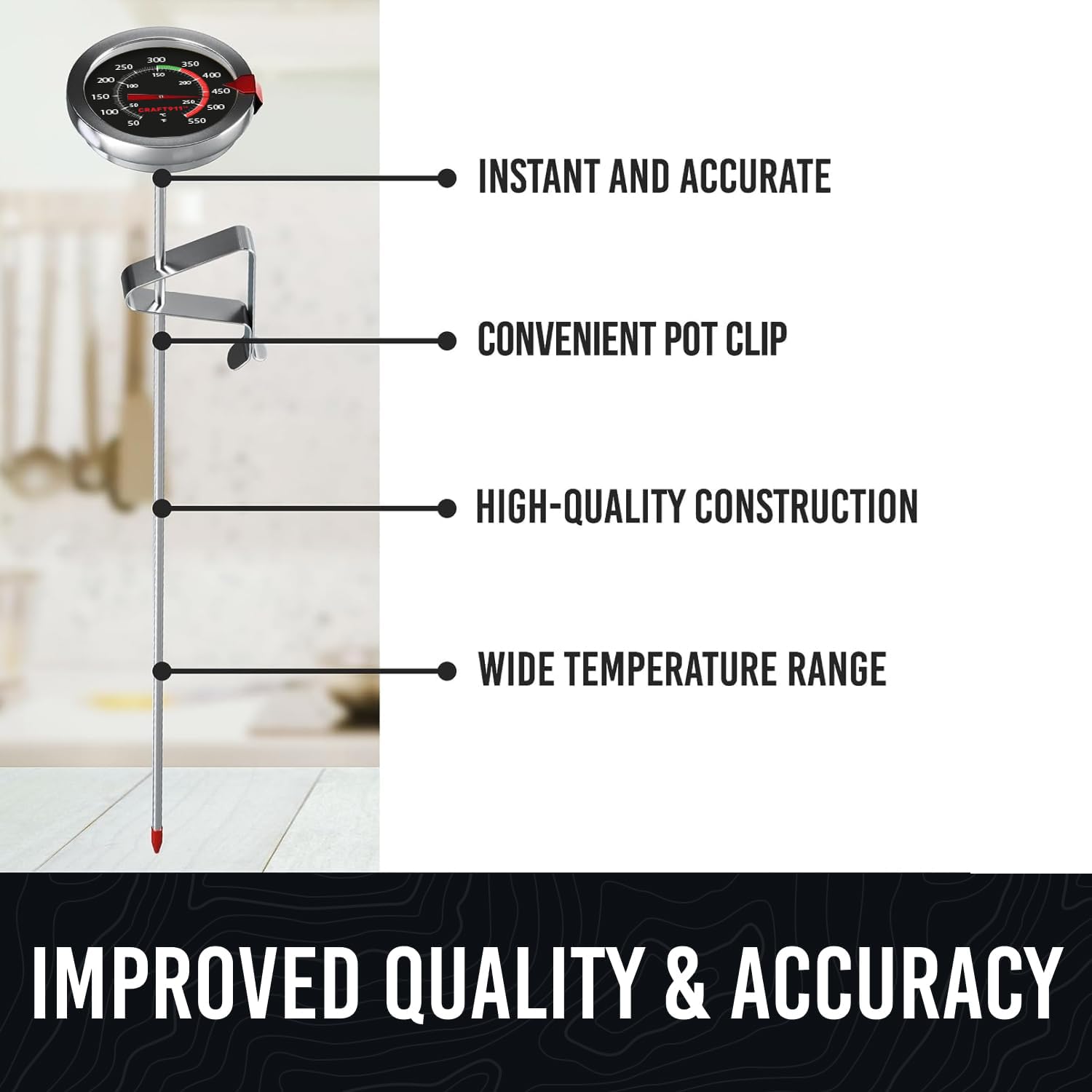 - HIGH-QUALITY CONSTRUCTION --- The Oil Thermometer for Frying is constructed with high-quality materials, featuring an 8-inch probe made of stainless steel. This high-quality stainless steel ensures safety and durability, making it suitable for all types of food daily. The thermometer's robust construction guarantees longevity, allowing you to rely on its performance for years. Its sturdy design withstands high temperatures and ensures that meets your culinary needs with excellence.