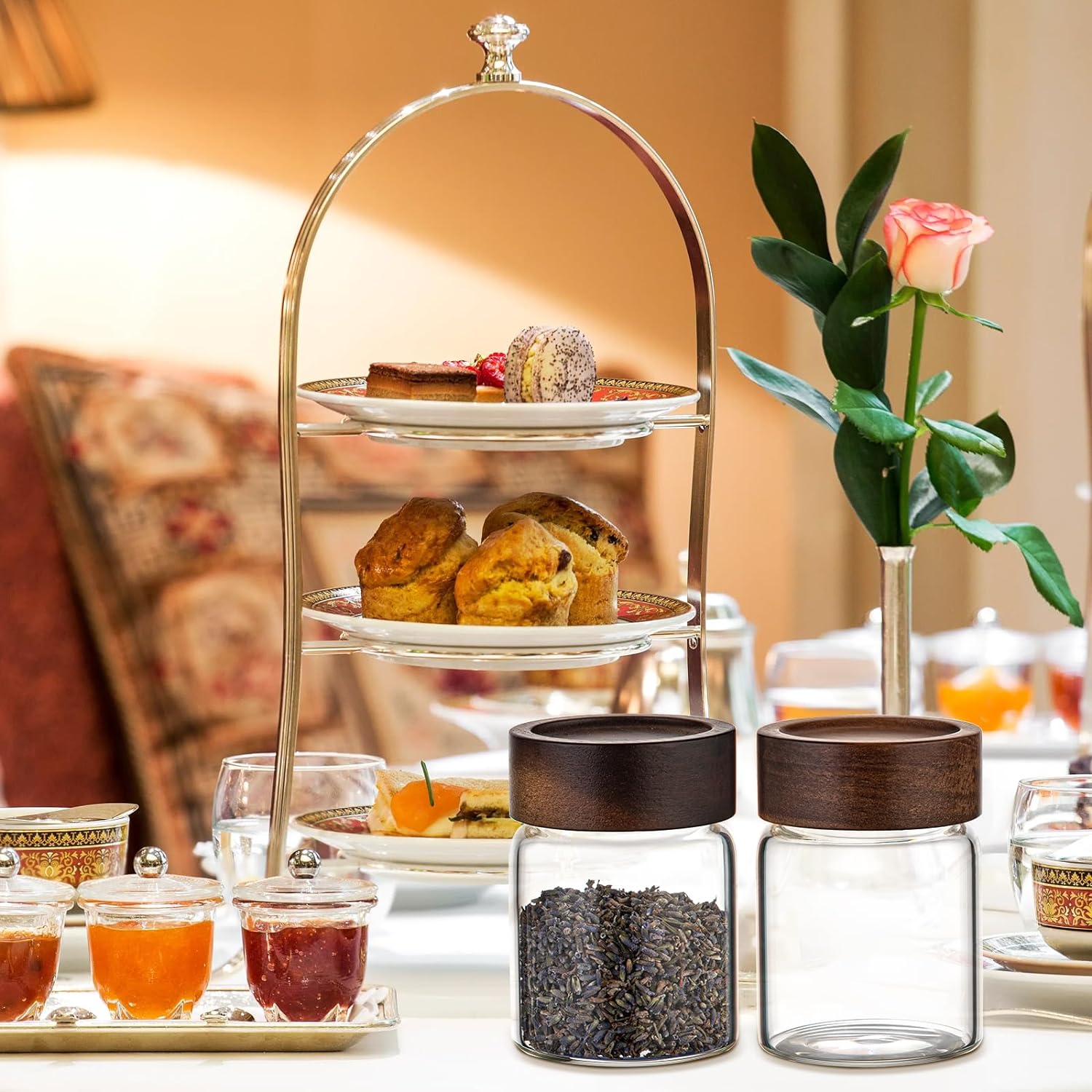 - - 【STYLISH & PRACTICAL DESIGN】: Small Glass food canister for kitchen counter are expertly designed with transparent crystal glass,easy to see what is inside, screw airtight lids are convenient to rotate the lid to open,especially suitable for parties, afternoon tea, dining tables, festivals, baking,outdoor gardens, restaurants, hotels to display.All materials are BPA-free, safe and non-toxic.Easy to clean and carry.