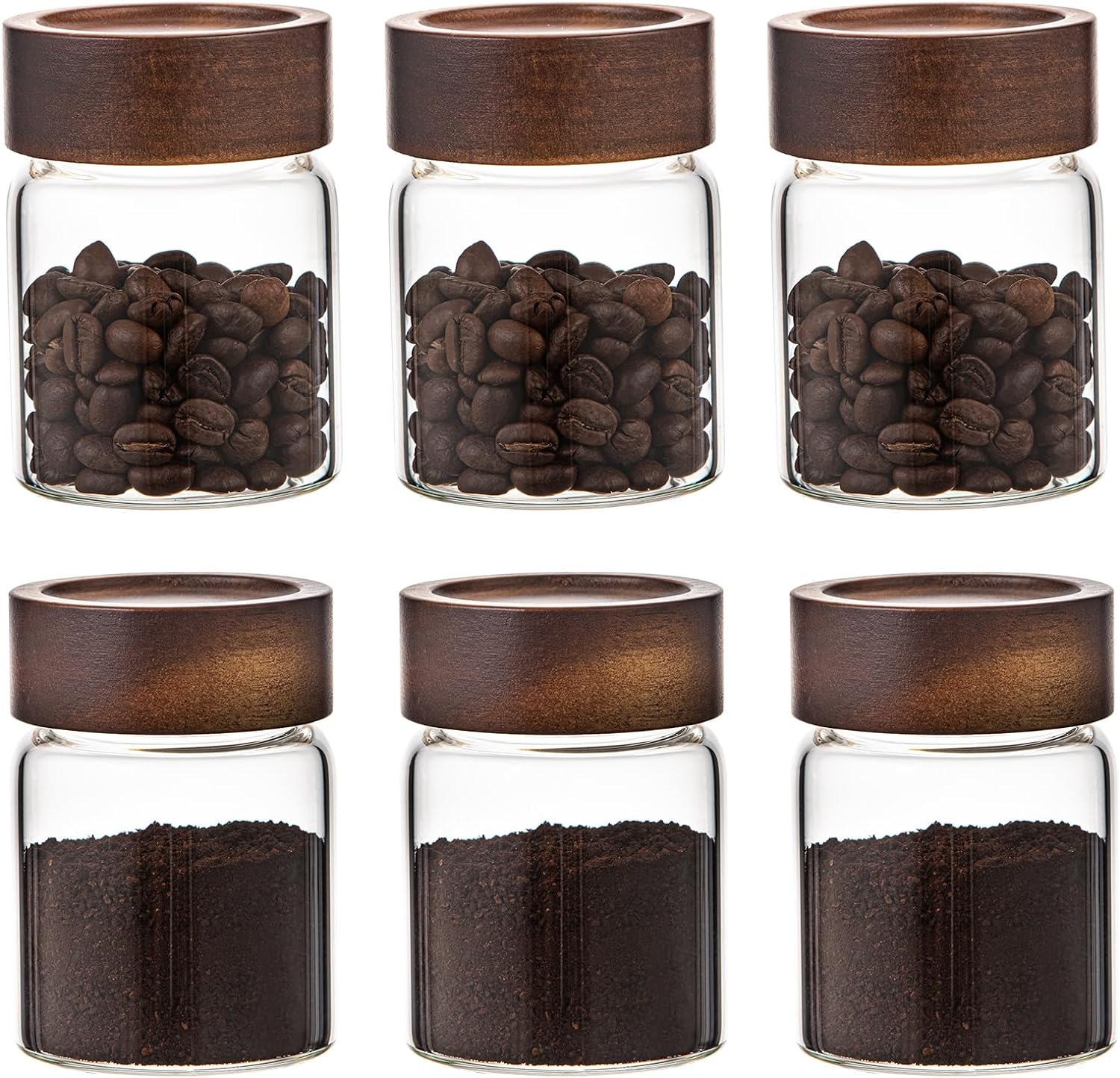 - - 【WIDE APPLICATIONS】Glass canning jars storage are suitable for storing various dried ingredients to retain their freshness.Glass jars with wood lids perfect for storing dry food , such as,cookies,dried beans,pepper,oatmeal,jams,chutneys, rice, flour, tea, coffee, biscuits, candy,cheese,flour, sugar, seeds,etc. Keep your kitchen tidy and safe,saving space and convenient .
