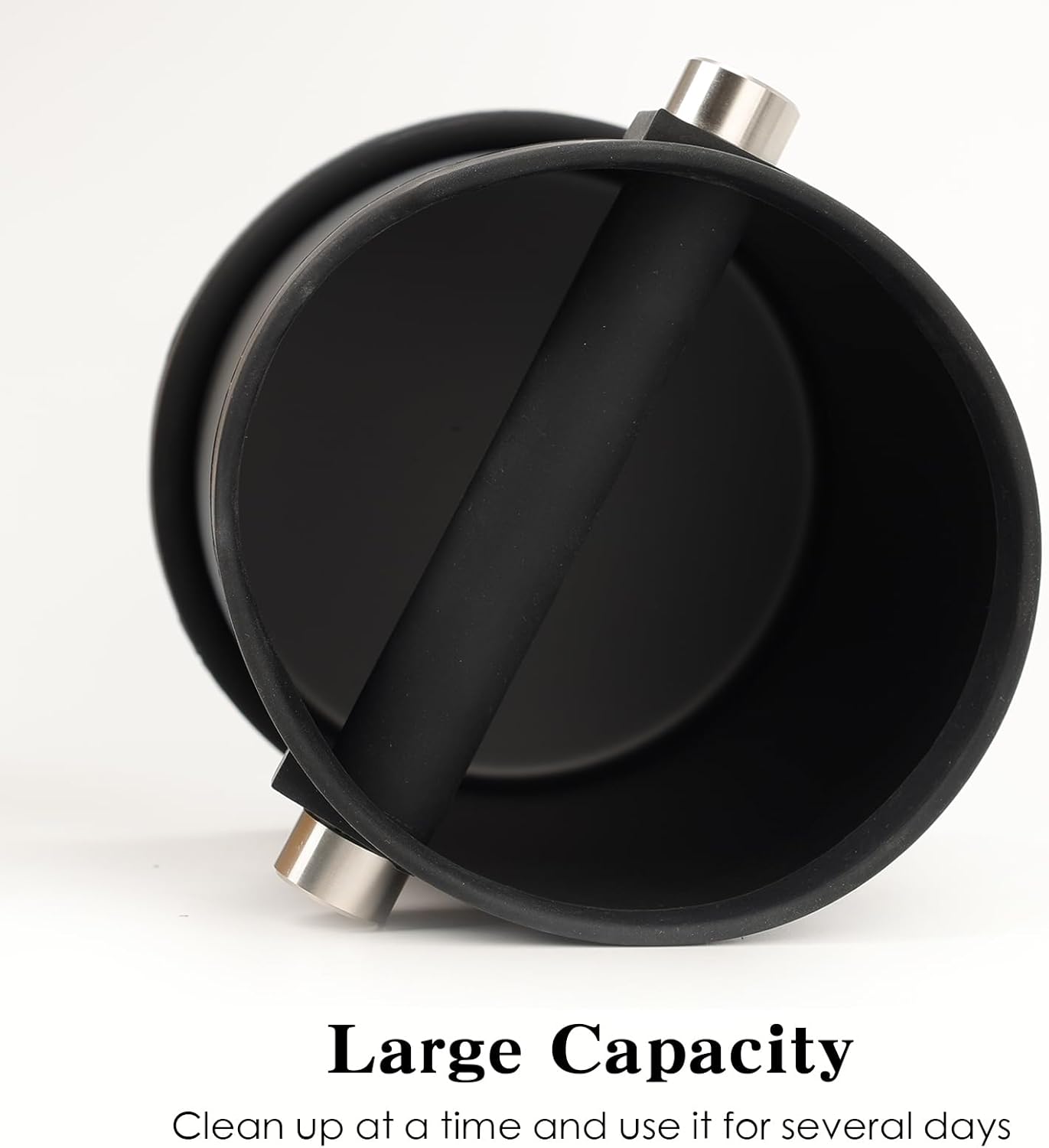 Coffee Tapping Box, Stainless Steel Espresso Floor Container, Waste Coffee Bucket, Barista, And Anti Slip Base Coffee Tools (Black)