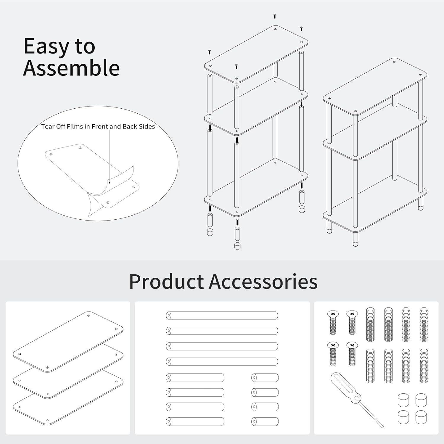 - ăEasy to AssembleăYou can assemble the 3 tier clear acrylic narrow side table in a short time. You just need to follow the drawing instructions to install.