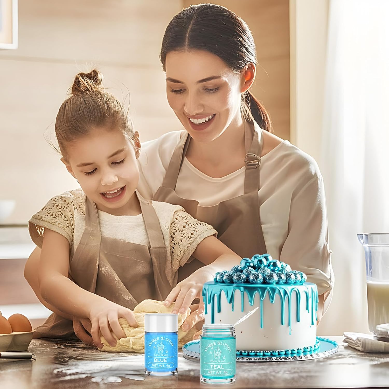 Cherrysea Edible Glitter for Drinks Cocktails Food Grade Edible Drink Shimmer Powder for DIY Champagne Beverages Wine 2 Colors Vegan Edible Luster Dust Set 4g/Bottle Gluten Free - Teal+Blue