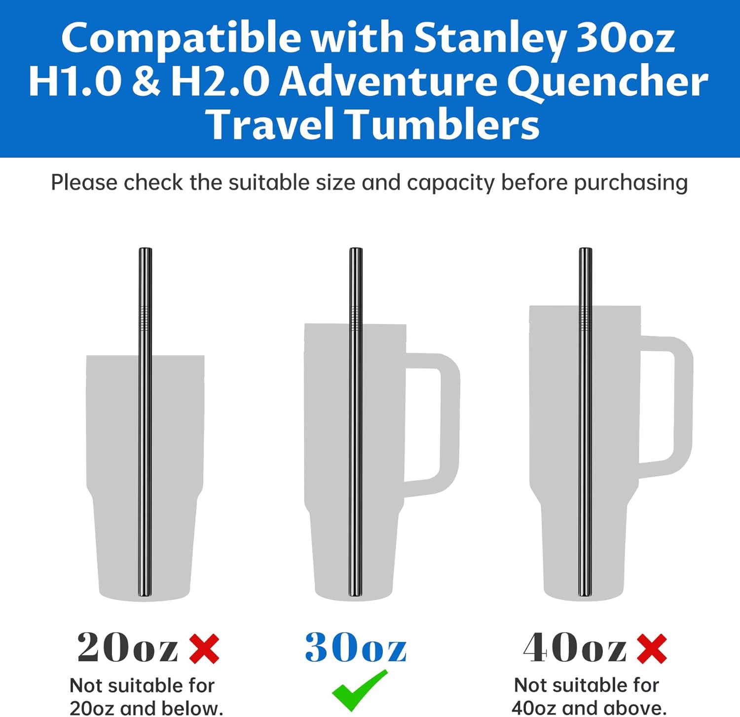 - 🍹 Compatibility - With dimensions of 11" in length and 0.35" in width, these straws are compatible with your Stanley 30oz Adventure Quencher Travel Tumbler. Their large diameter simplifies the enjoyment of milkshakes and fruit teas, allowing you to easily savor your beverages.