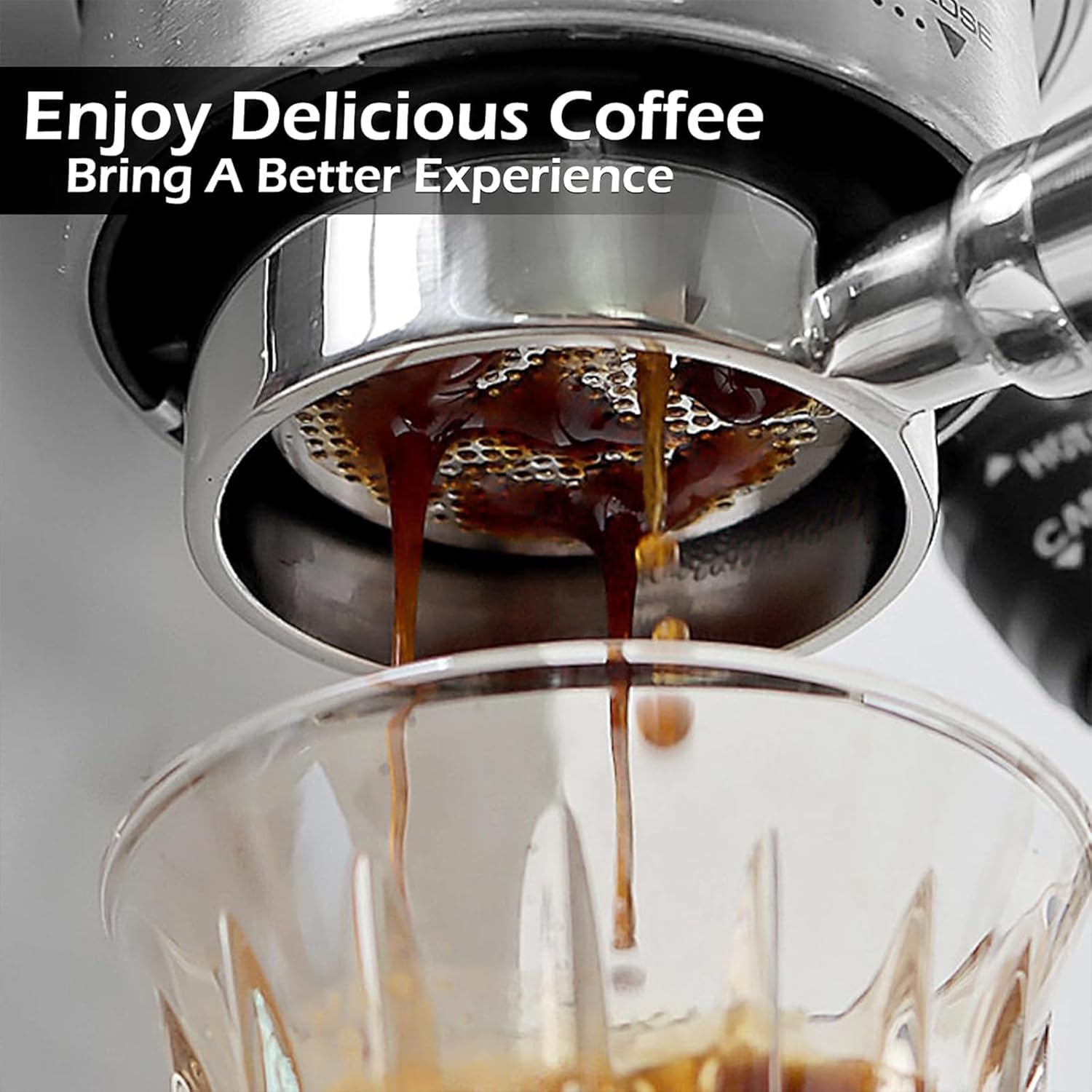 - 【Simple to use】After putting the coffee powder into the portafilter and place the coffee dosing funnel on top,Stir it evenly with the WDT tool,and then distribute and mash it.Finally, put the coffee puck screen on the portafilter and extract.Very easy to use, which helps you make delicious and mellow coffee drinks.