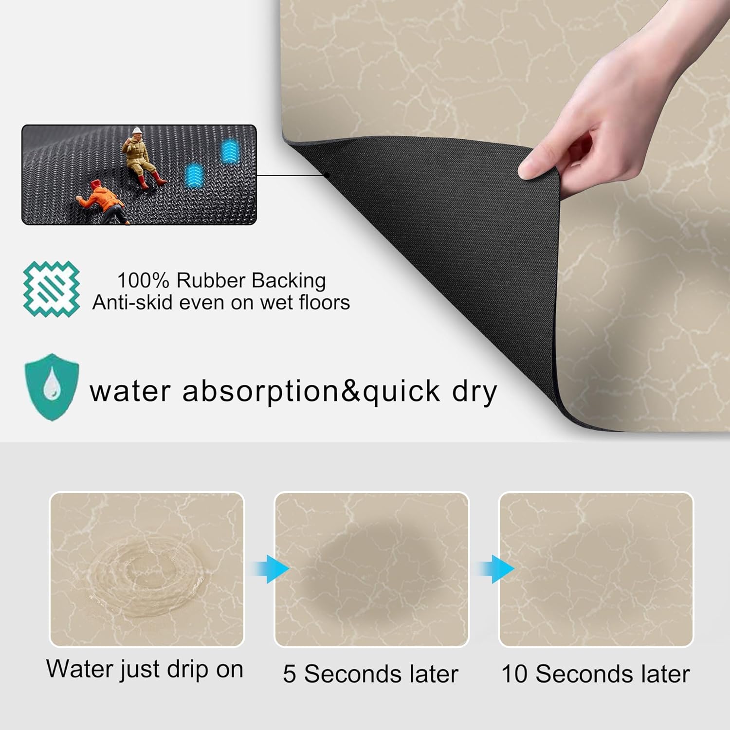 Coffee Maker Mat for Countertop - Coffee Bar Accessories Fit Under Cafe Machine, Rubber Backed Absorbent Pad, Table Mat Under Appliance, Kitchen Counter Dish Drying Mat, 19"x12", Marble Beige