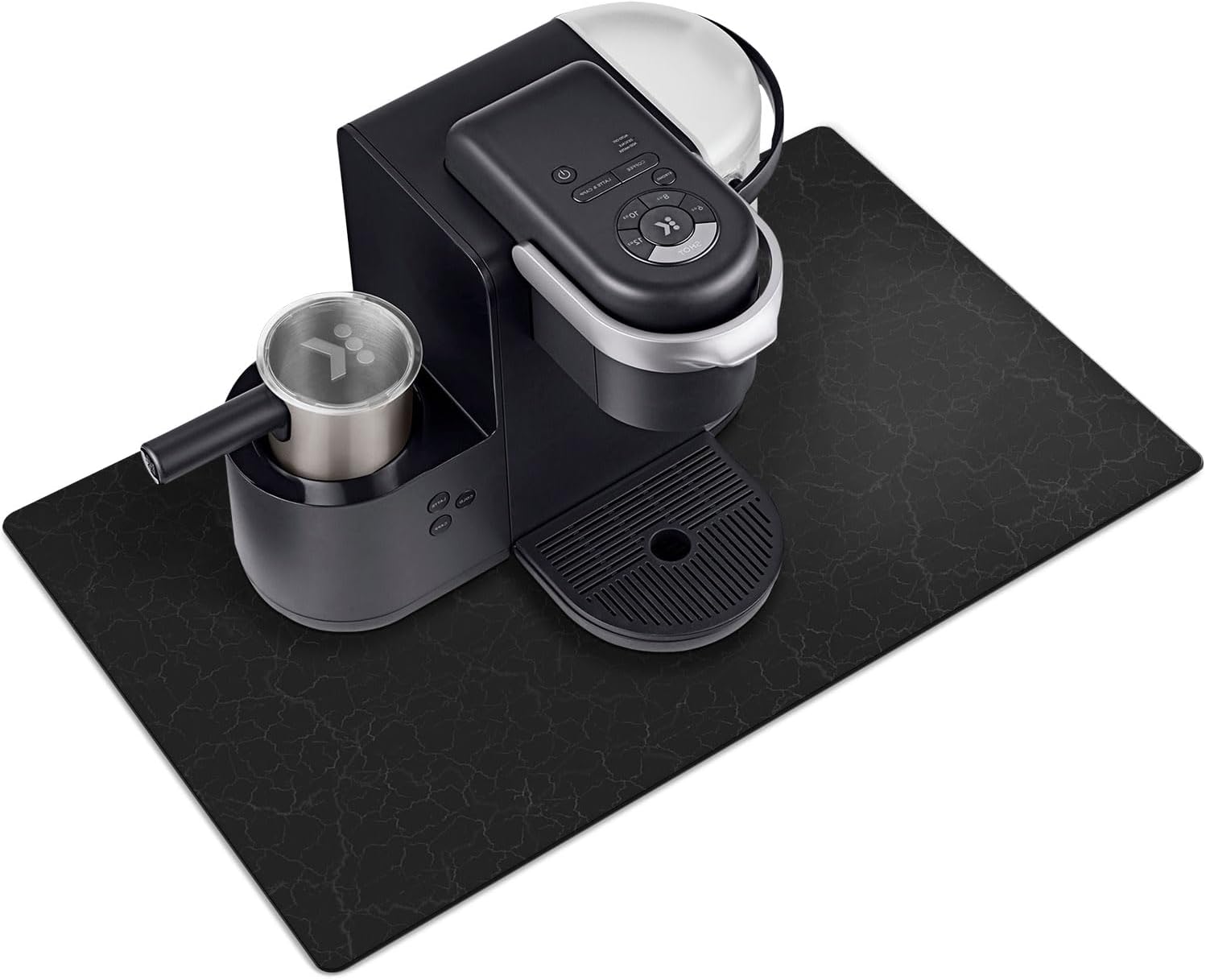 Golener Coffee Bar Mat,Under Coffee Maker Mat,23"x15"Coffee Tray Mat Under Coffee Machine,Rubber Coffee Maker Mat,Under Appliance Mats,Silicone Hot Mat for Coffee Machine,Dish Drying Mat, Marble Black