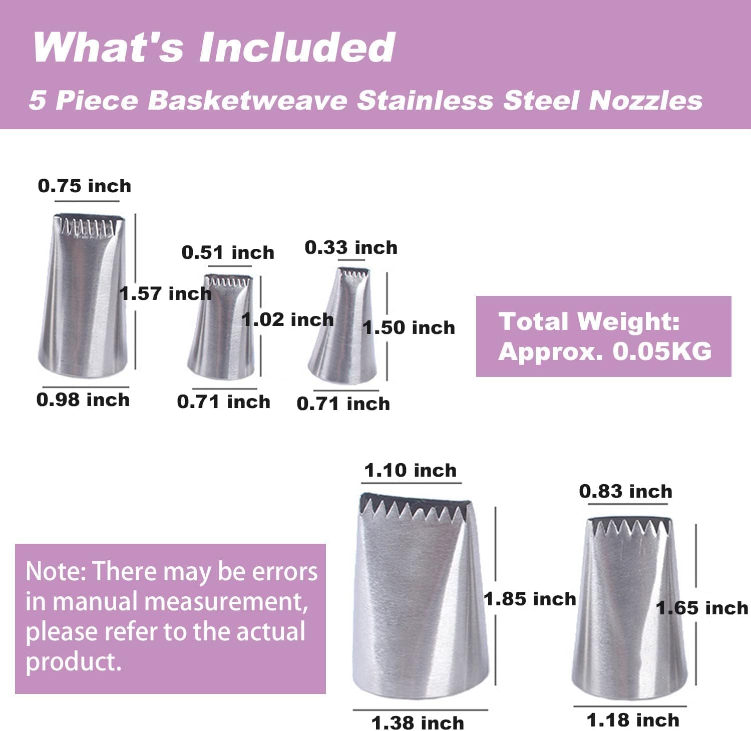 - 【PERFECT DESIGN】With these basketweave tips you can make smooth stripes or both smooth and ribbed stripes with ease. Frosting nozzle shape flat on one side and serrated on the other side.