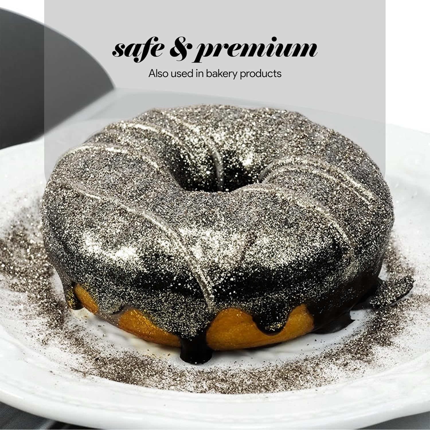 BeePoint Black Edible Luster Dust 15g - Food Grade, Vibrant Color Shimmer Powdered Dust for Drinks, Cocktails, Cake Decorating, Baking, Chocolates, Candy, Sweets, & Cookies - Vegan & Gluten Free