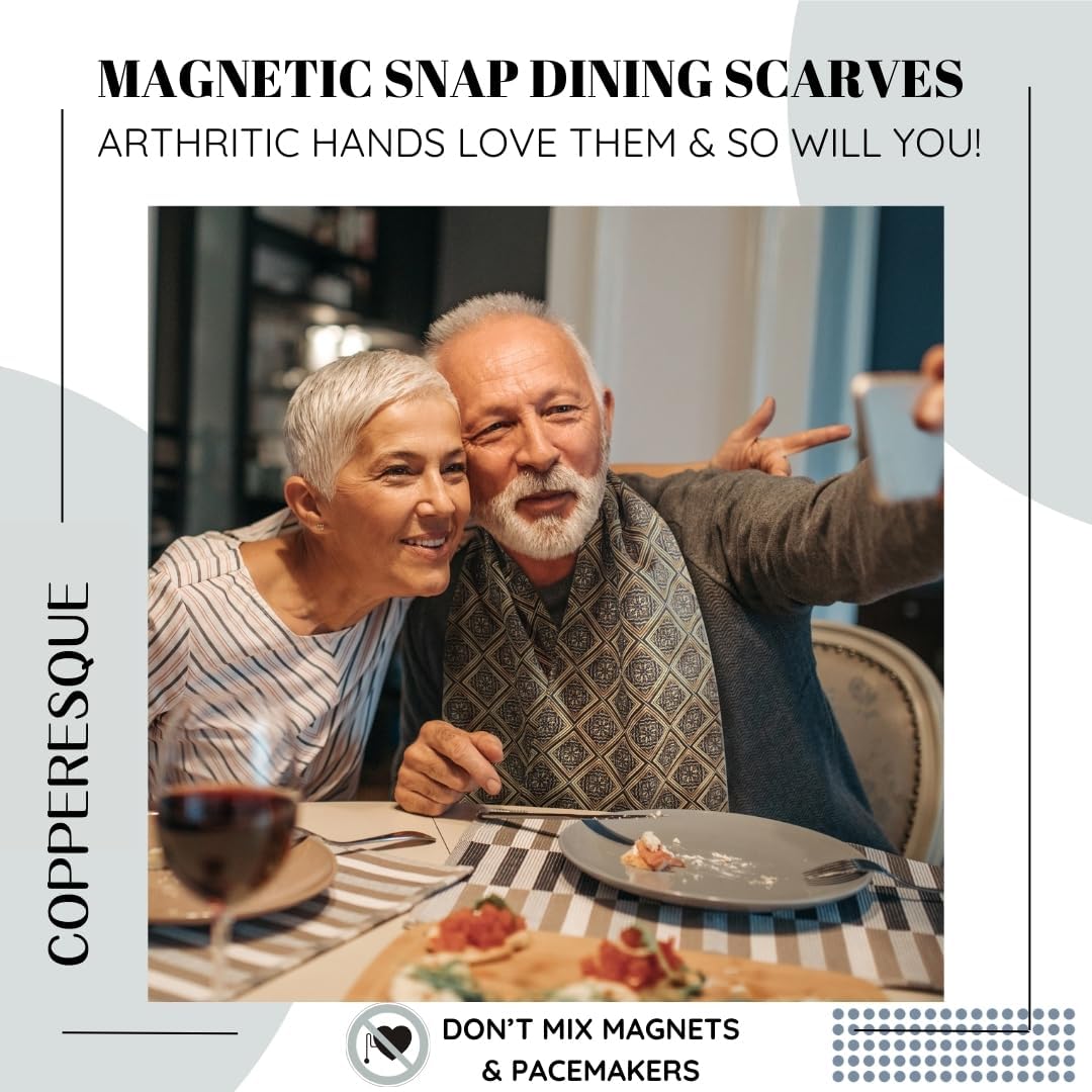- 🎁 EASY TO WEAR Our uniquely designed bibs for adults solve the problems of size with a modified scarf design. Simply drape around your neck, the micro-suede texture will keep it in place. Provides independence to adults with arthritic hands, Parkinson’s Disease, hand tremors, and other medical conditions. A clothing protector which masquerades flawlessly as an accessory for any outfit.