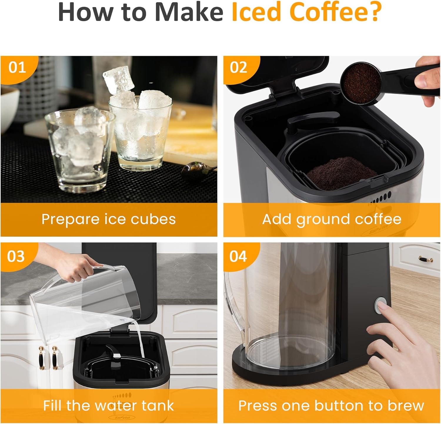 SUNVIVI Iced Tea Maker with 3-Quart Pitcher, Iced Coffee Brewing Maker for Ground Coffee, Tea Bags, Loose Leaf Tea, 7 Cups Coffee Machines for Home, Strength Control for Flavor, Black