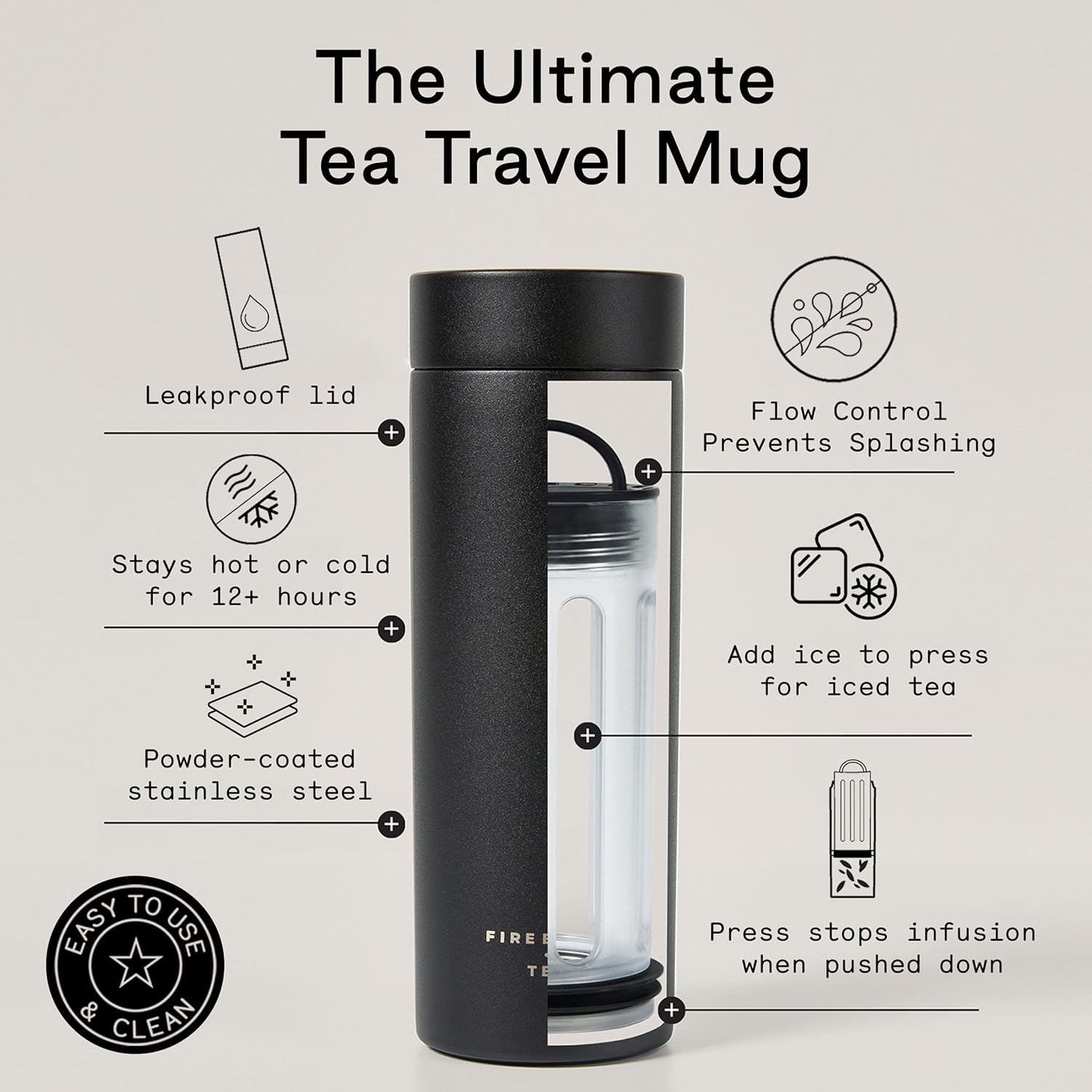 - Disassembles for Easy Cleaning: The press can be fully taken apart for deep cleaning, making this tea infuser mug easy to maintain; A non-slip base keeps the tumbler stable on various surfaces, from your desk to your dashboard