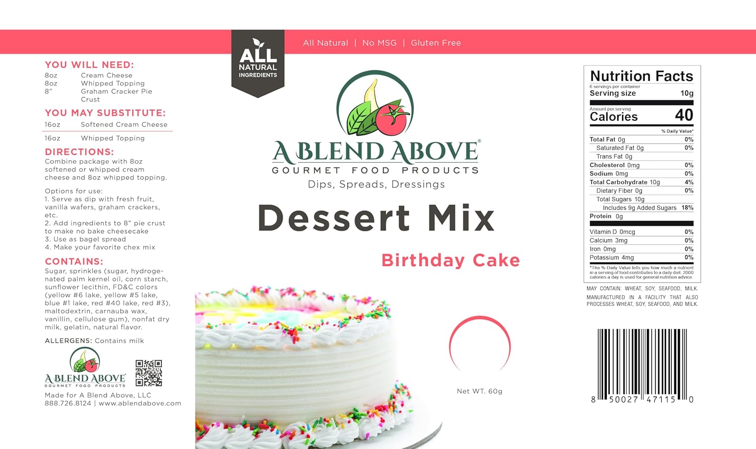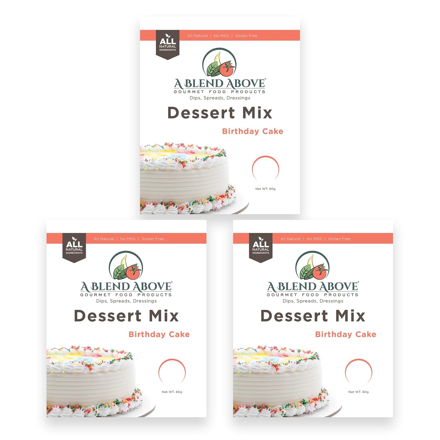 A Blend Above Birthday Cake Mix - No Bake Desserts, All Natural, Gluten Free, No MSG - Instant Dessert Mix, Fruit Dip, Bagel Topping, Frosting, Cheesecake Filling - Easy to Make - 4.2 Oz (Pack of 3)