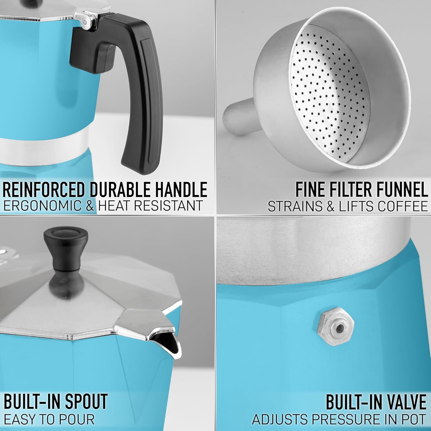 Zulay Premium Moka Pot Espresso - Leak-Proof Stovetop Espresso Maker - Perfect for Authentic Cuban & Italian Style Espresso - Makes 6 Espresso Cups - Light Blue