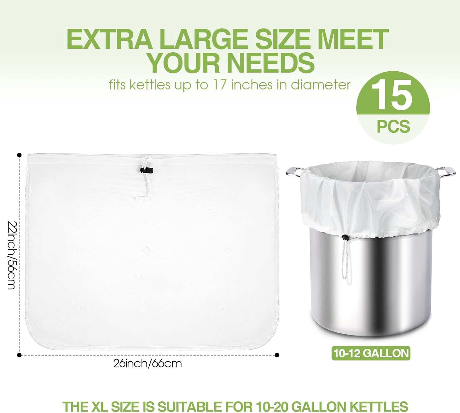 Chumia 15 Pack Brew Bags Reusable Extra Large 26 x 22'' Fine Mesh Strainer Cold Brew Filters Drawstring Cheese Cloth Straining Bags Wine Making Supplies for Fruit Cider Beer
