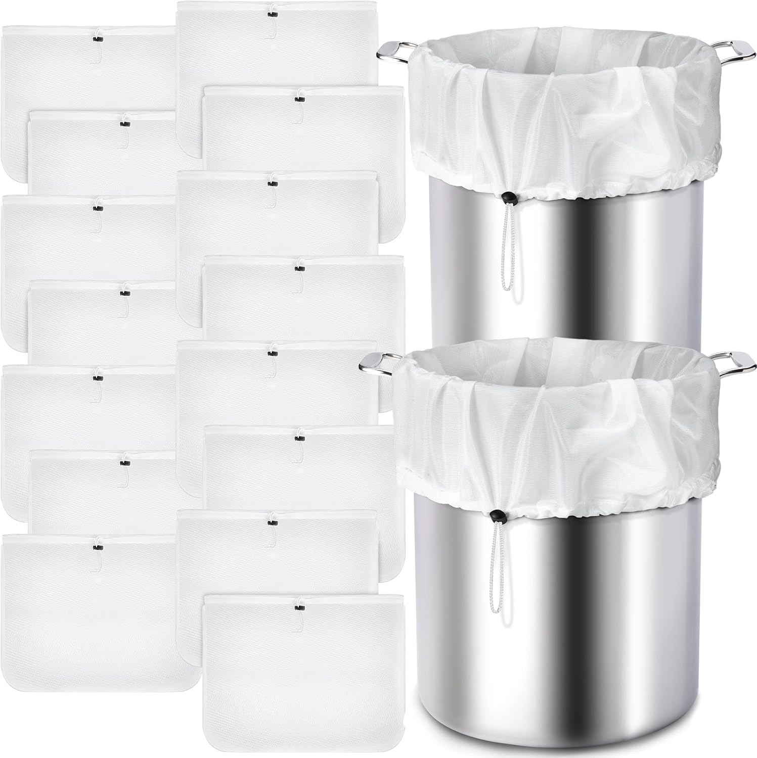 - Practical Combinations Set: you will receive 15 pieces of brew bags, each straining bag are made of tightly woven mesh polyester material, which is tear resistant, washable and reusable. They will remain smell and can be applied for long time