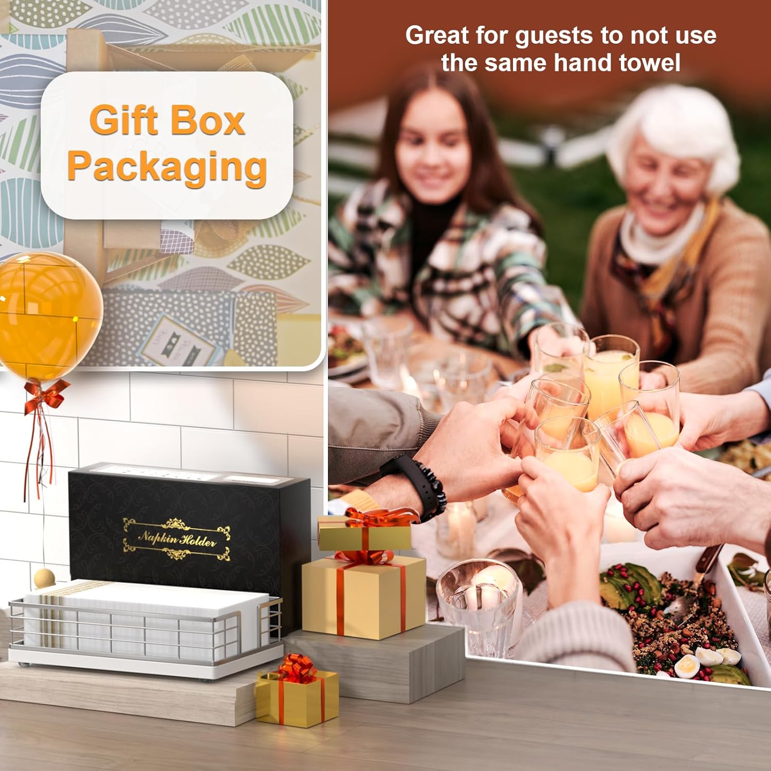 - Quite Versatile: This guest towel holder hold paper towels in the guest bathroom for hand drying; hold paper bath towels for your powder room, easy to retrieve towel when needed; It can also be used as a lunch napkin holder, looking very nice on the dining table
