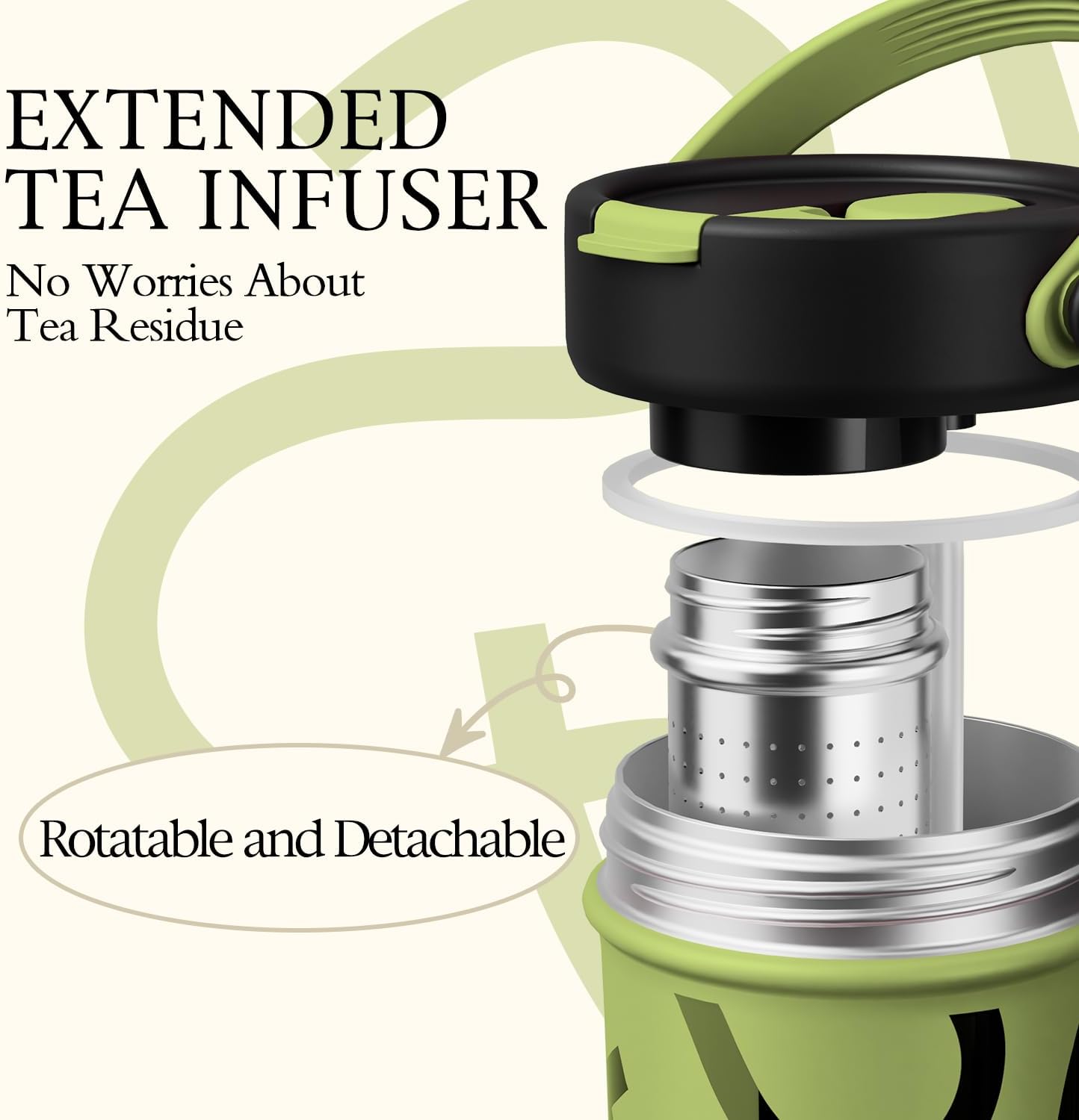 - INFUSE YOUR DAY WITH INNOVATION: Brew your favorite teas or coffee effortlessly with the integrated infuser, and enjoy on-the-go convenience with a foldable straw and leak-proof design. Its sleek handle ensures effortless portability, while the car cup holder fit makes it the perfect choice for modern explorers