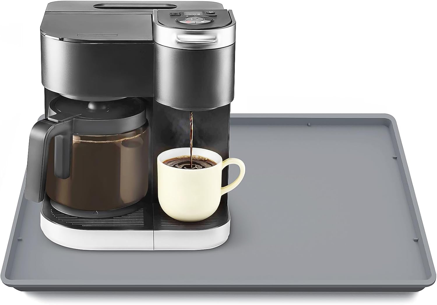- Widely Used: Beyond serving as a coffee machine mat, this under coffee maker mat has multiple uses, such as a pet feeding mat, under sink mat, plant tray, craft mat, can access door mat, cat litter mat or a heat insulation mat, its versatility makes it an indispensable addition to your home.
