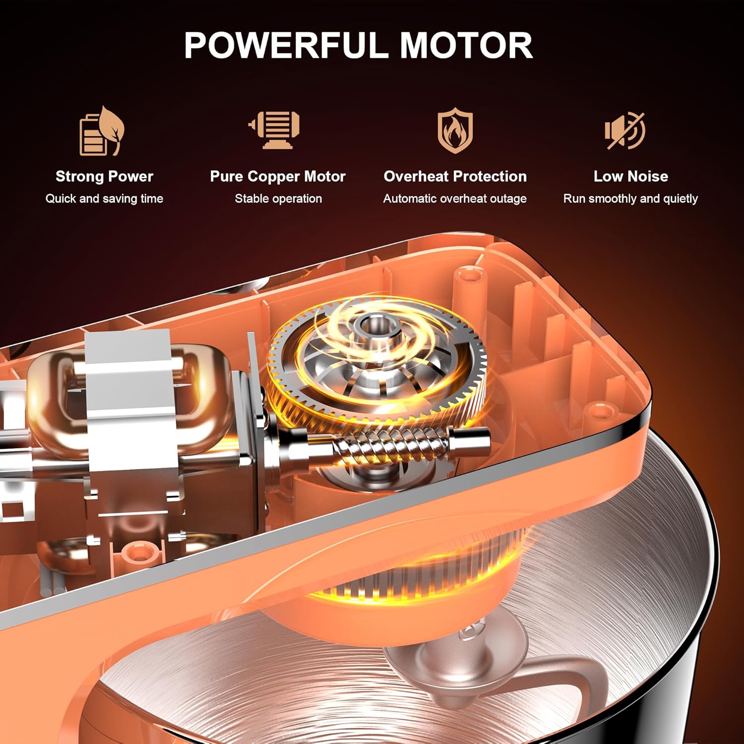 - Tilt-Head Design & Anti-Slip Suckers: The tilt-head electric mixer provides easy access to the accessories and stainless steel bowl. The 4 suction suckers on the base can be firmly attached to the table to maintain the stability of the mixer