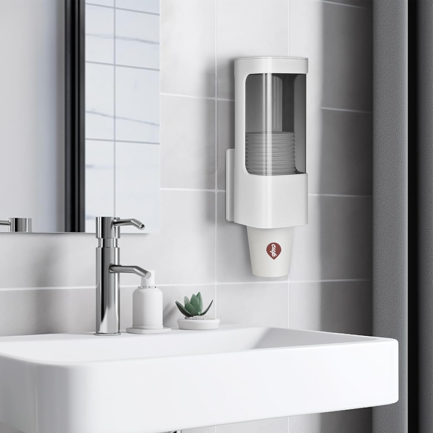- [Durable, High-Quality Materials]: Made of high quality ABS and transparent PC, this water cooler cup dispenser is heat-resistant, corrosion-resistant, and lightweight yet sturdy. Designed for everyday use, this wall mount cups dispenser is ideal for busy bathrooms, kitchens, and office spaces.