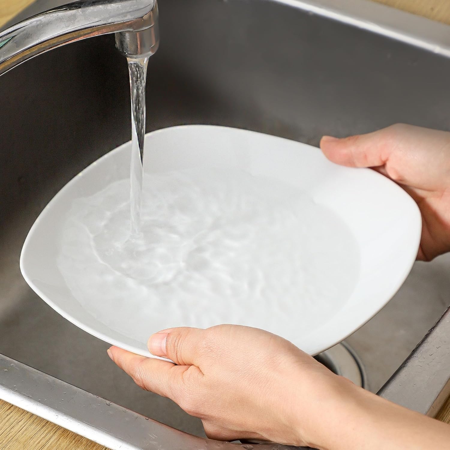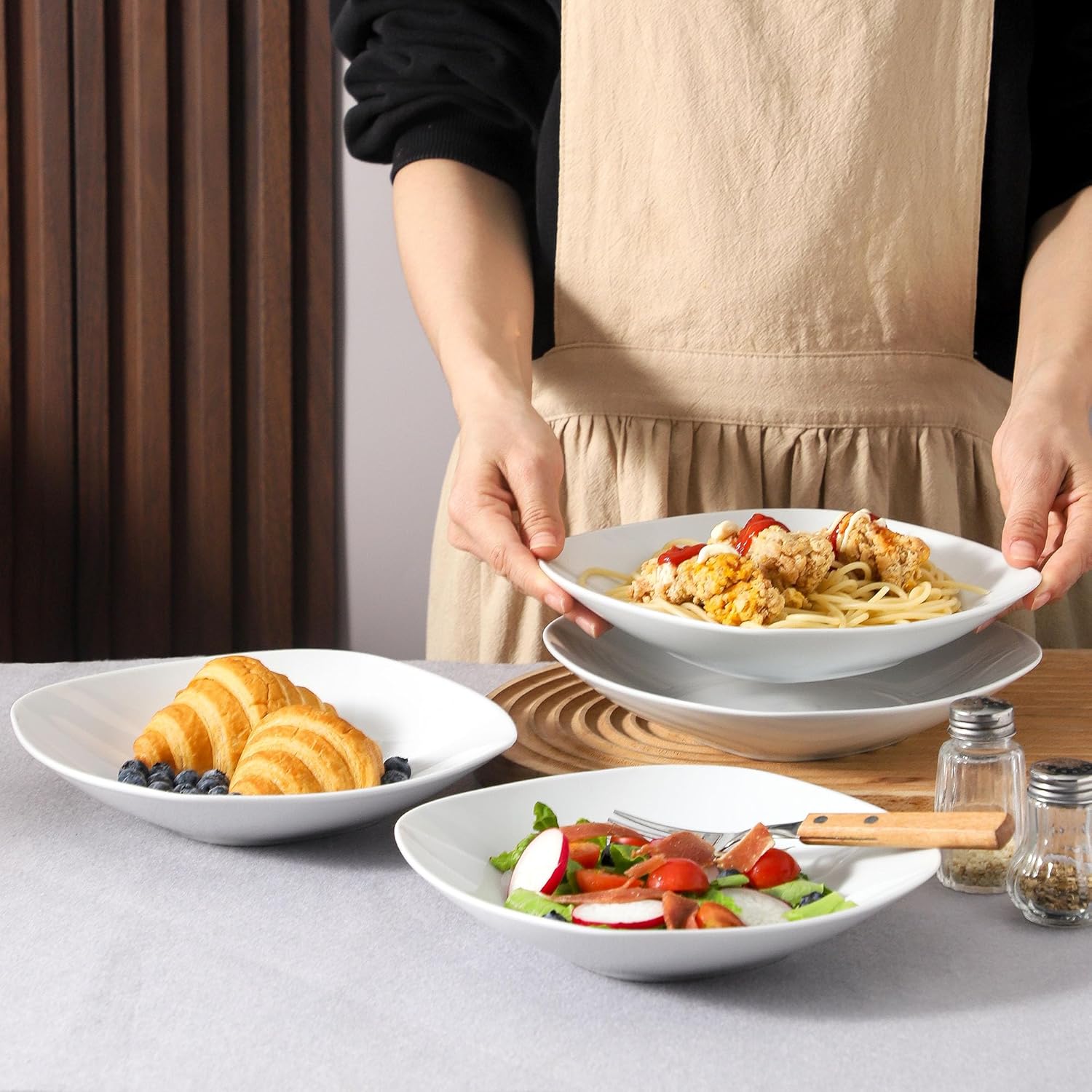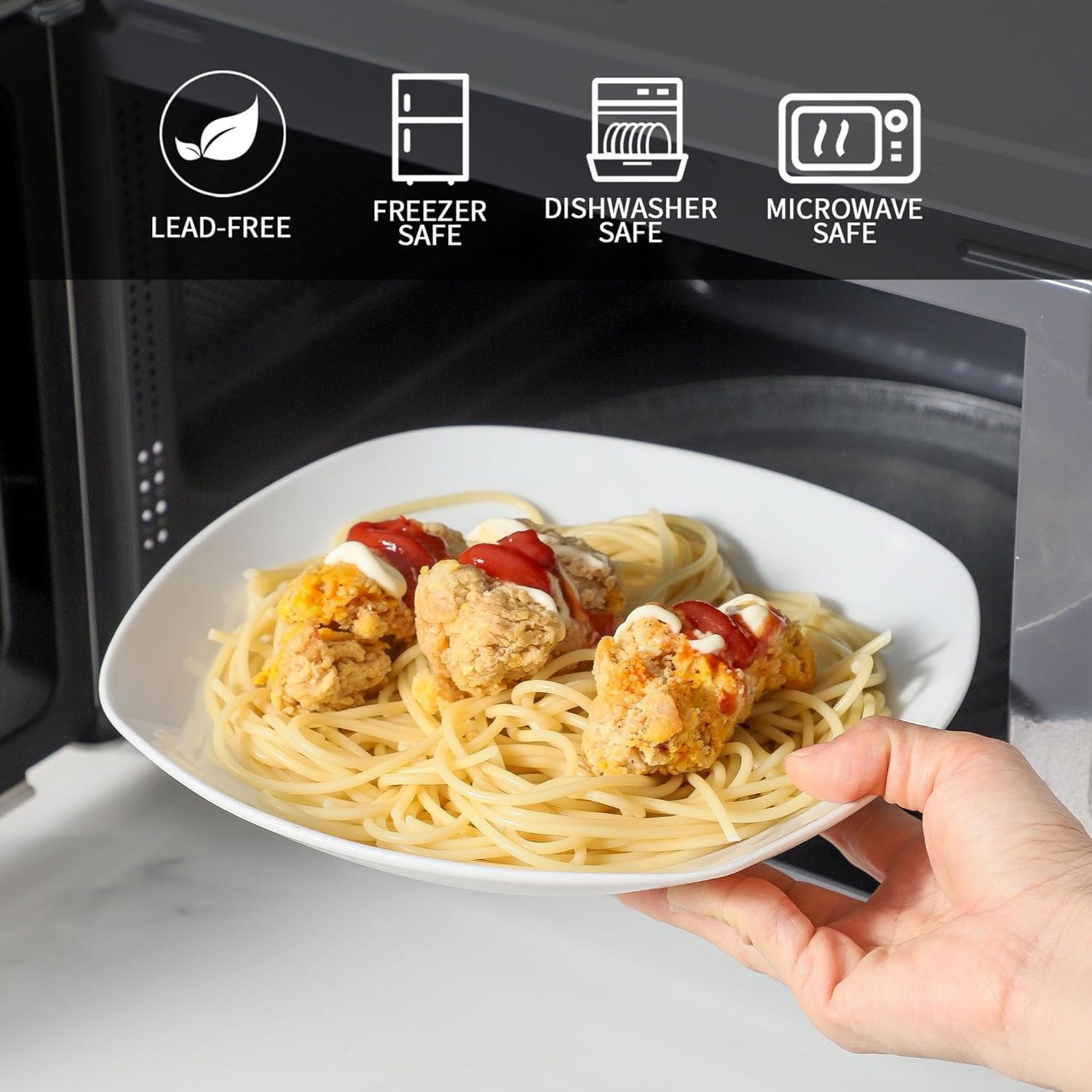 - Modern Irregular Design: These large serving bowls feature a straight edge and wide design with a large capacity for larger, creative food portions. Smooth glazed protect plates against stains and easy to clean. The bottom of the dinner bowl is square and adopts a flat bottom design. To save on space, the dinner plates can easily stack on top of each other for compact storage in a cupboard