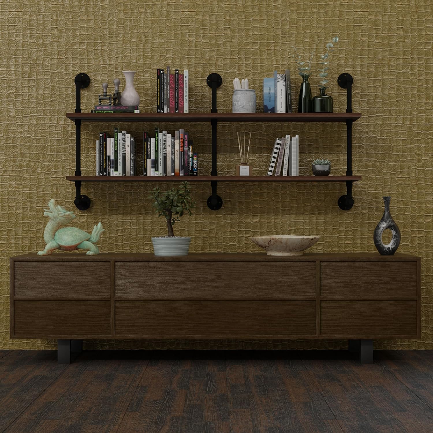 - ăGood Load Capacity & Long Years UsageăThis industrial pipe shelving,which is 0.8-inch-thick plank, ensures that it has a good load-bearing capacity. you need. This long wall shelves for room wall is very durable and you don't have to worry about it cracking easily.