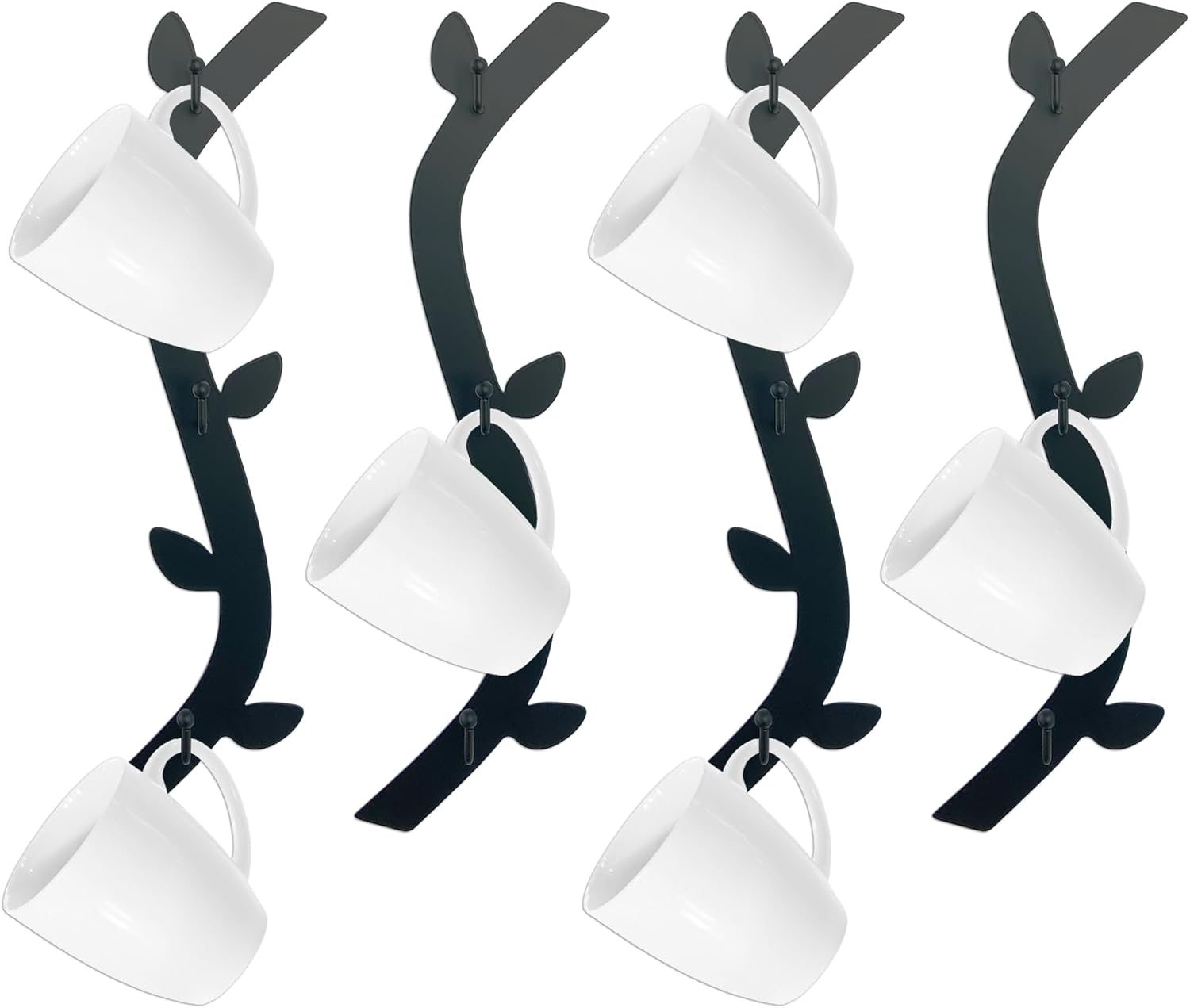 - Beautiful and Stylish look: This coffee mug holder is designed in curved and coffee leaf shapes,have a stylish and modern design. It not only helps keep your mugs handy but also adds a stylish touch to your kitchen or office wall decor.
