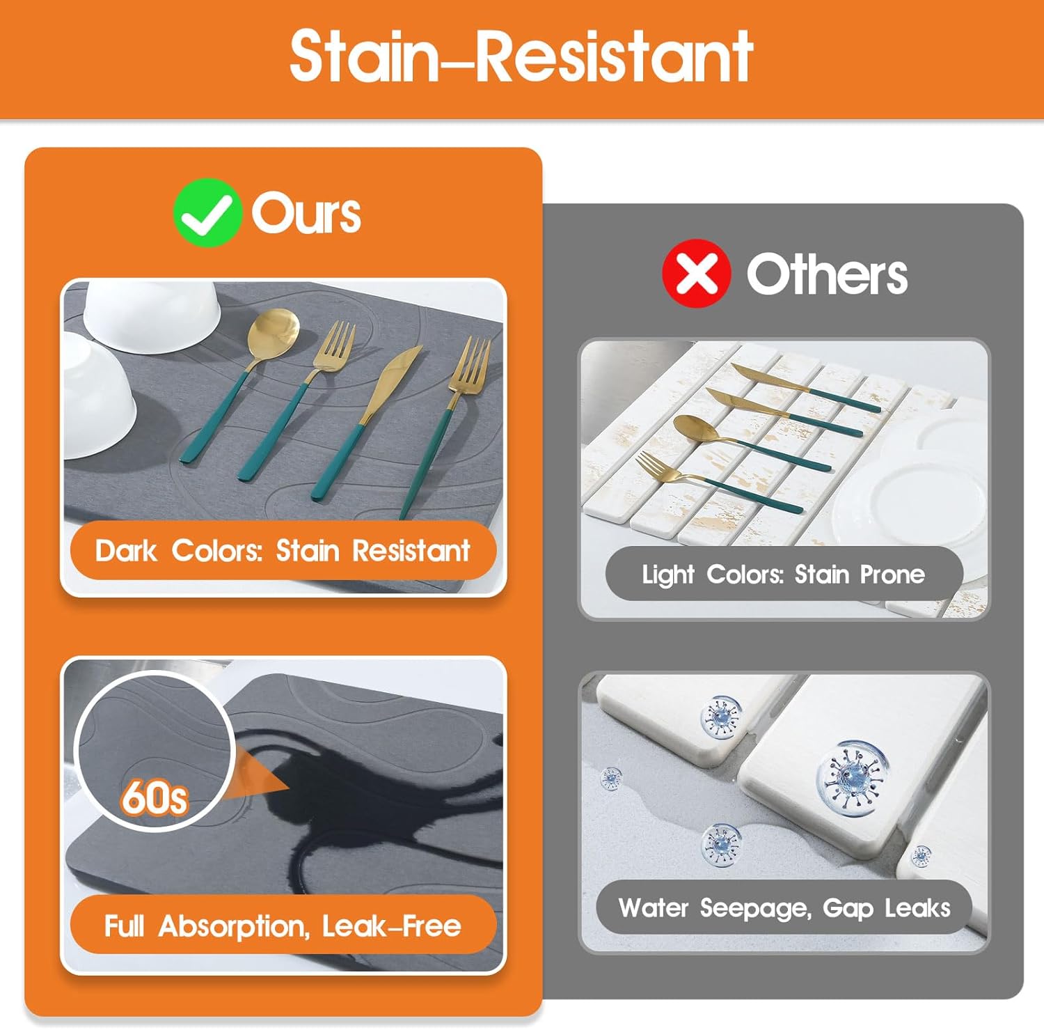 - ๐๐ฎ๐ข๐๐ค ๐๐ซ๐ฒ๐ข๐ง๐ :The stone drying mat absorbs moisture from dishes in seconds and fully dries them within minutes. Its drying efficiency is several times greater than that of silicone and fabric mats, preventing unpleasant odors and water stains