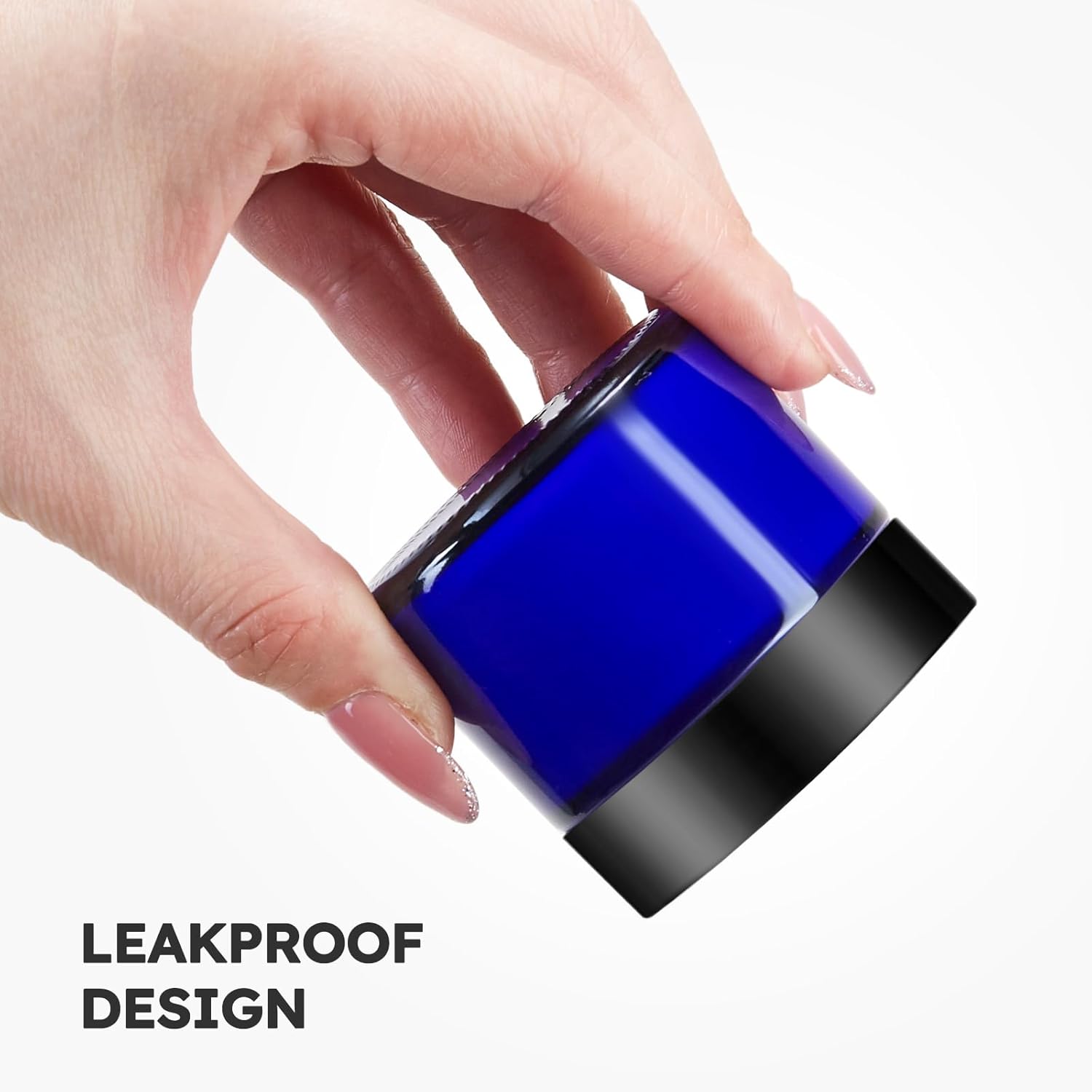 Bumobum 2 oz Glass Jars with Lids, 48 pack Round Small Containers with Black Lids, Blank Labels & Inner Liners, Empty Cosmetic Containers for Sample, Powder, Cream, Lotion Amber and Blue