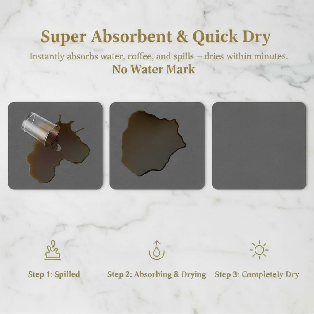 - QUICK DRY & COUNTERTOP PROTECTION – Say goodbye to messy counters with this breathable, fast-drying dish mat for counter. Works as both a coffee bar mat and dish mat drying kitchen mat, protecting wood, granite, and marble surfaces.