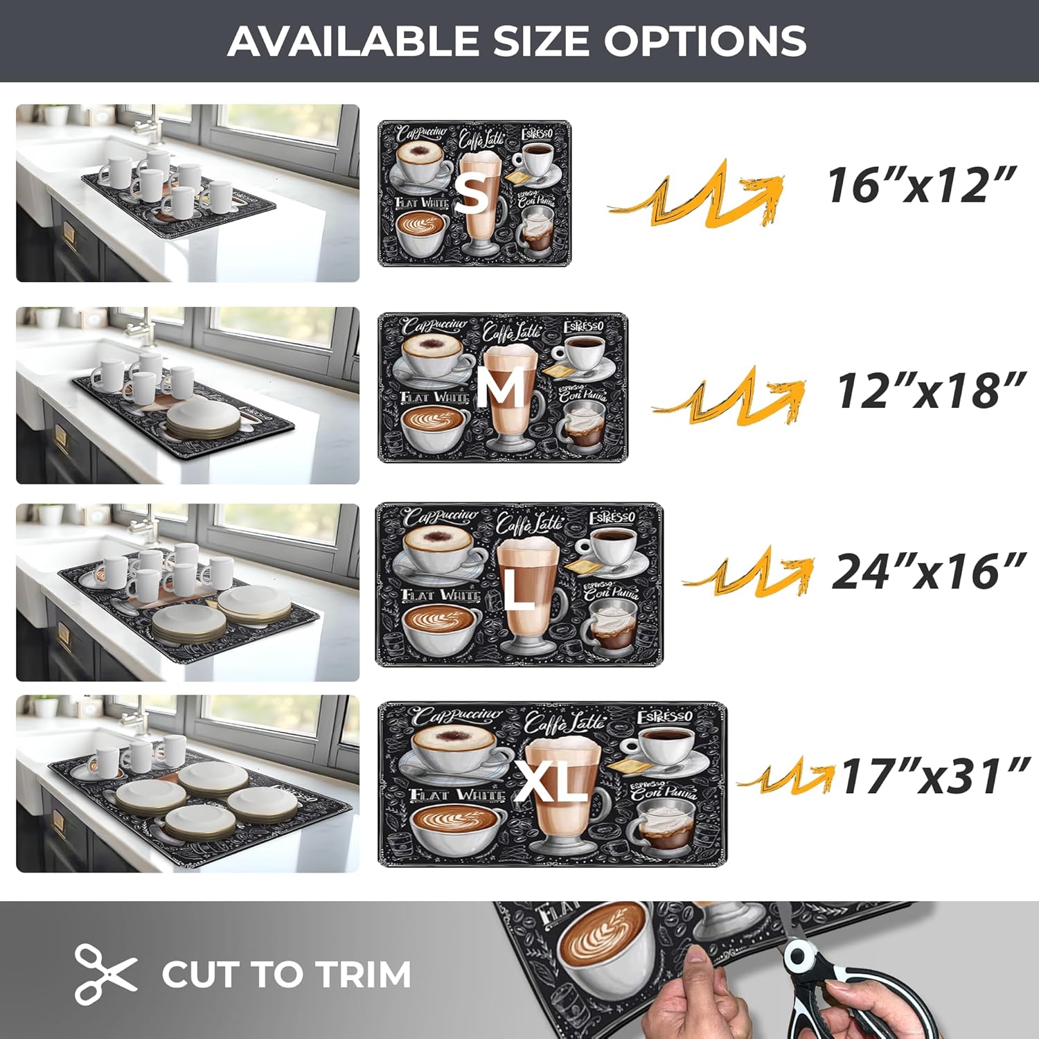 Dish Drying Mat Super Absorbent – 24" x 16" Coffee Mat for Countertops – Non-Slip Drying Mat for Kitchen Counter – Easy to Clean Water Absorbent Mat – Large Mat (Costa Rica Coffee)