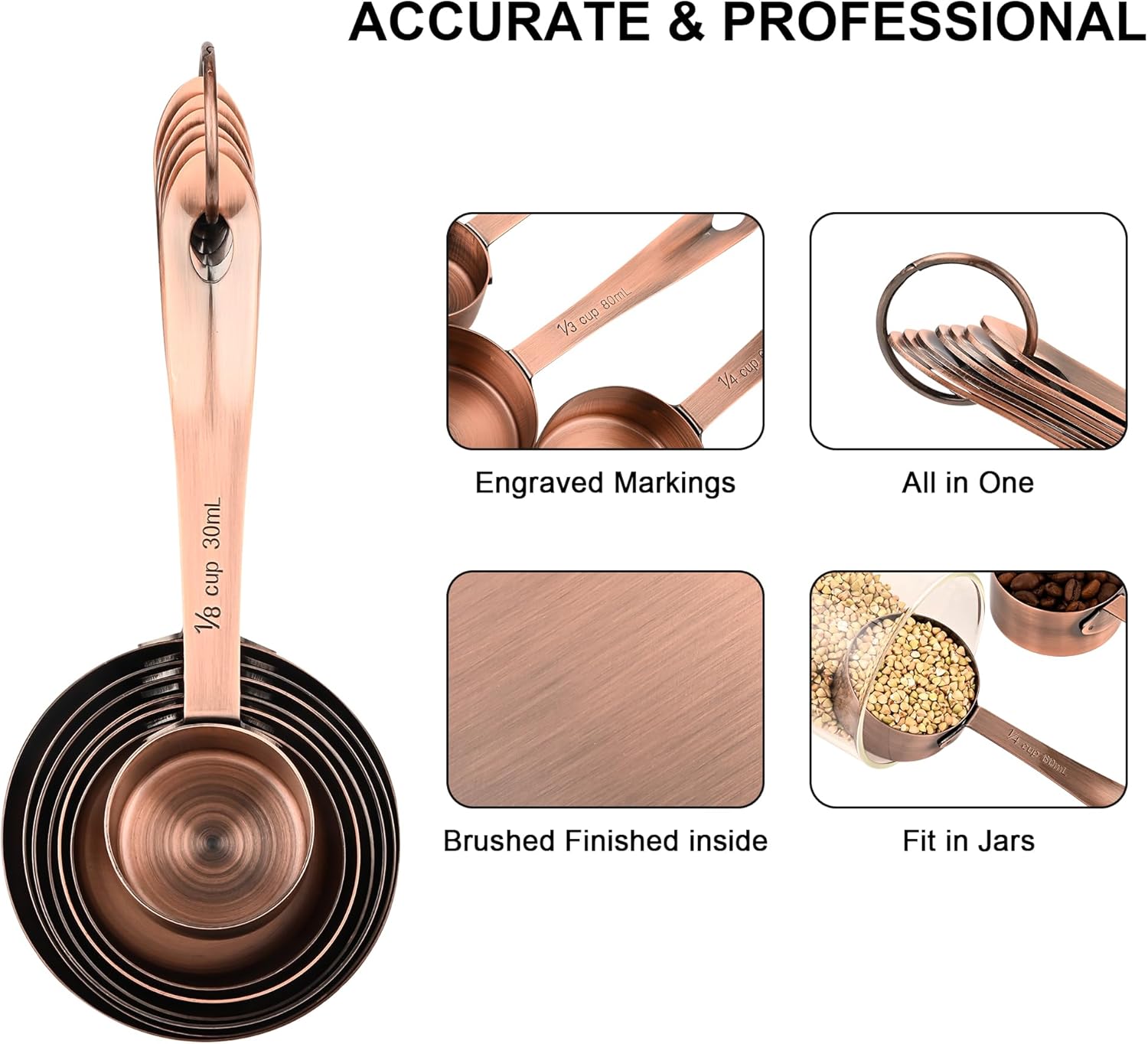 - ▲▲DURABLE AND STURDY – These copper measuring cups set are Stainless Steel with a copper plated which means that will not easy rust!