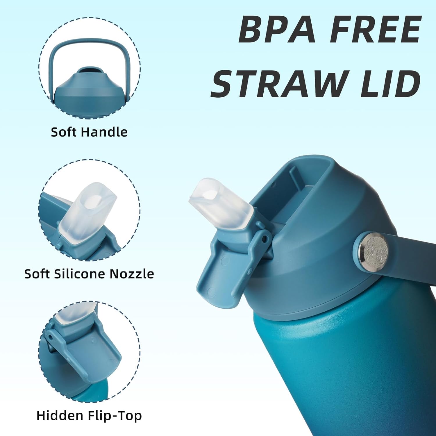 - INSULATED WATER BOTTLE WITH UPGRADED STRAW LID: BJPKPK insulated water bottle with straw lid use hidden flip-top Straw Lid to ensure open and close easily with one hand. The handle is soft and can freely rotate 180° for effortless carrying. Soft silicone nozzle will give you a better drinking experience. Upgraded hidden nozzle design can also keep the nozzle clean and ensure leakproof when it closed