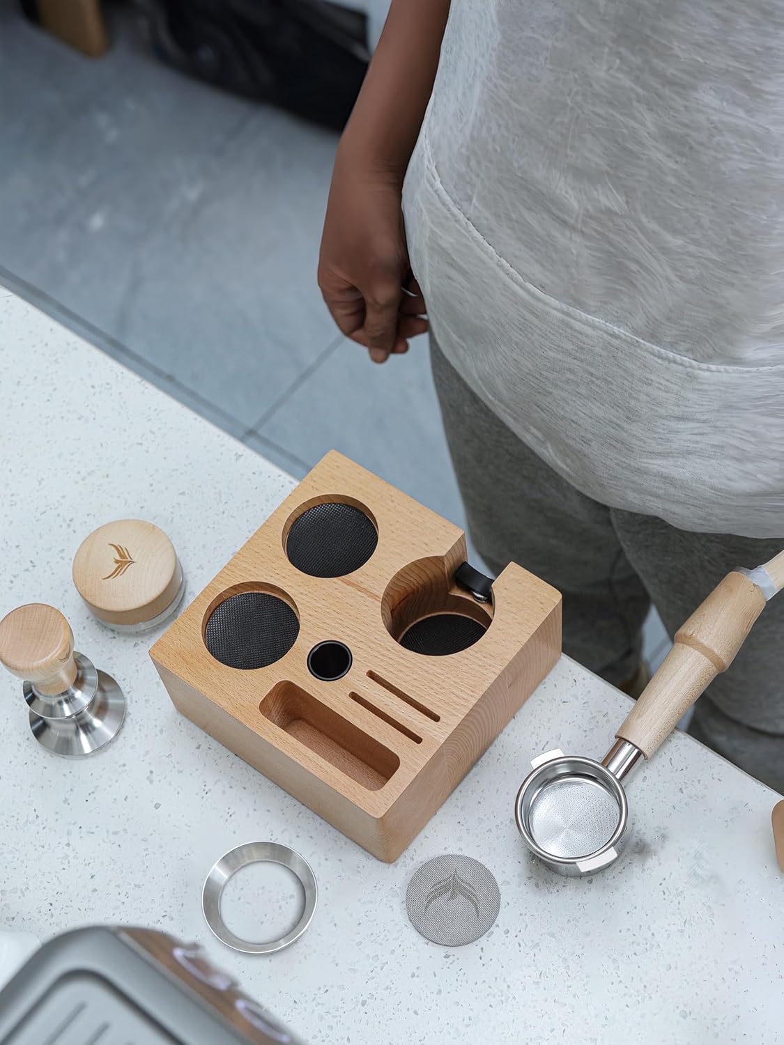 - At KNODOS, we're dedicated to combining functionality and artistry in our espresso accessories. Our love for working with wood is showcased in our product line, which includes WDT tools, knock boxes, tamping stations, espresso distributors, coffee bean cellars, portafilter hooks, dosing rings, and puck screens. Experience the craftsmanship and passion behind our products